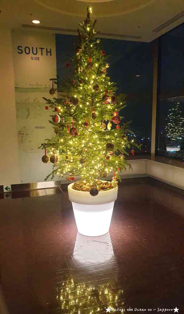 JR塔展望室T38南邊角落放著小小綠色聖誕樹,搭配淡淡的綠色燈泡,在這夜晚讓我這個遠從2716公里來旅人覺得特別溫暖。