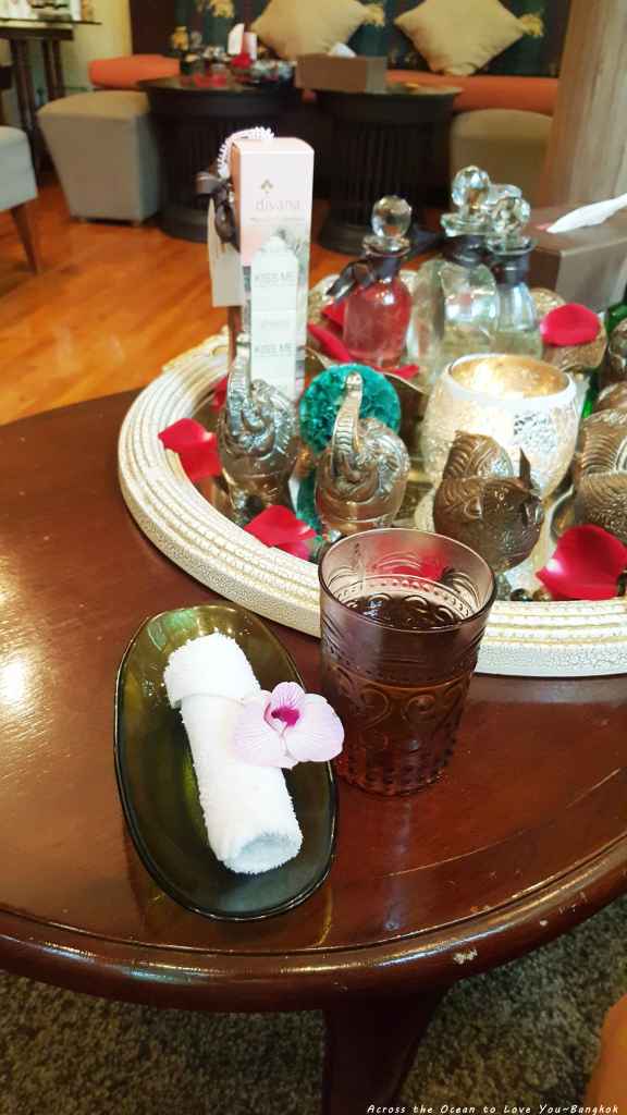 工作人員送上冰茶及冰毛巾,已經滿身是汗的我非常需要。毛巾的造型就與之前的Divana Virtue Spa花瓣造型不同,比較低調樸實。