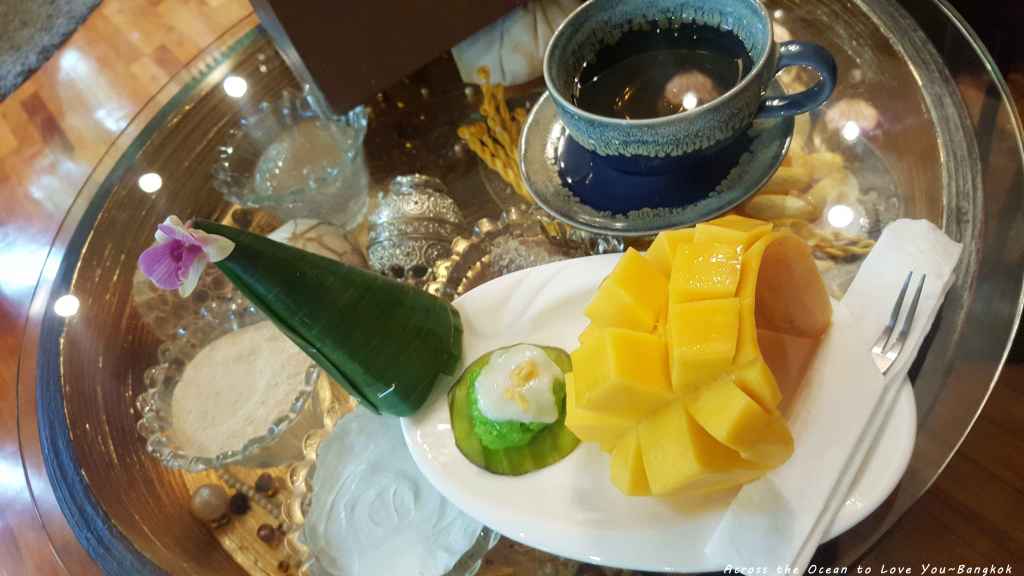 坐在大廳,馬上有另一位工作人員送上茶及水果,這次是芒果糯米飯,還真是好吃。