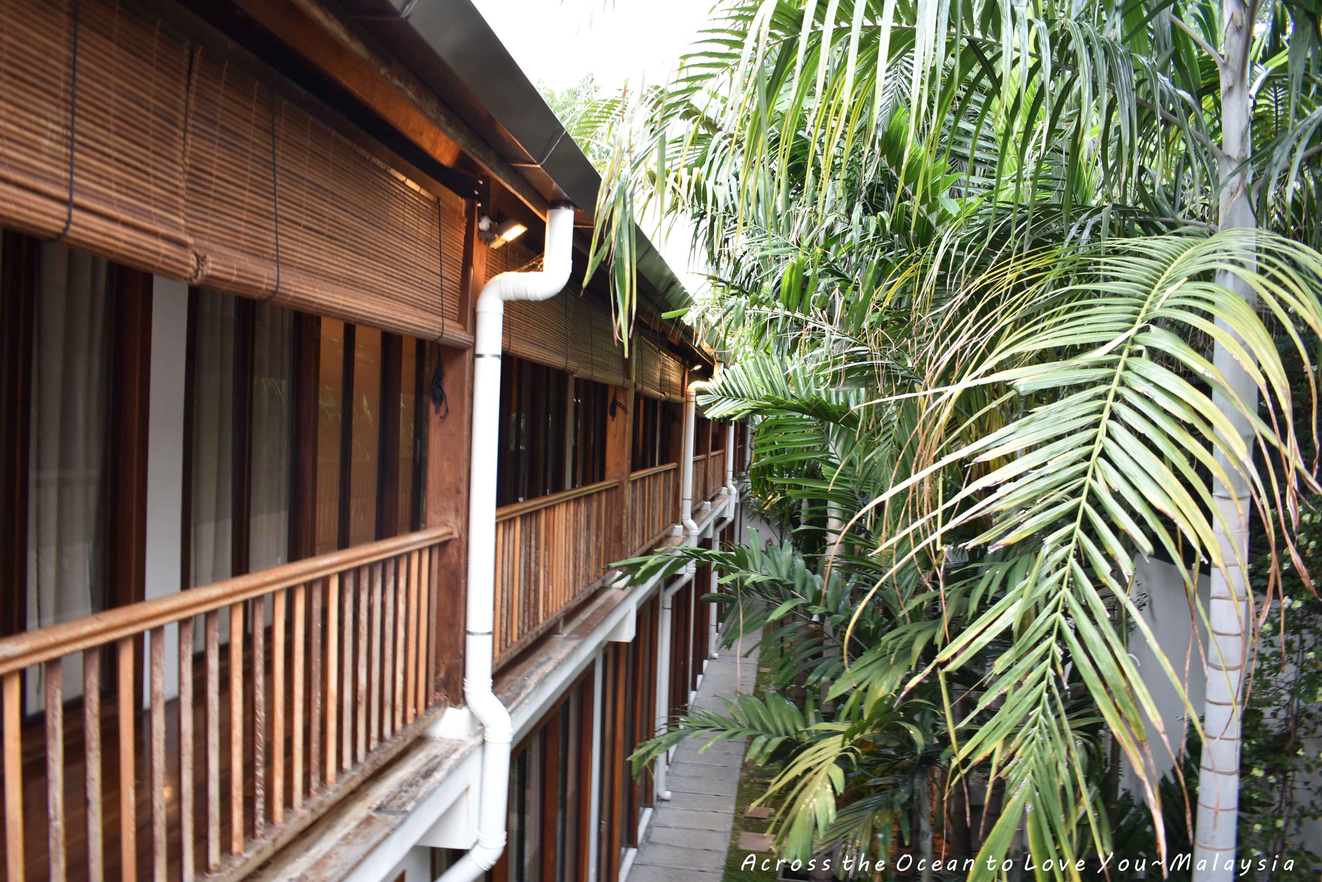 飯店的走廊有著竹簾遮陽,很有東南亞度假的感覺。