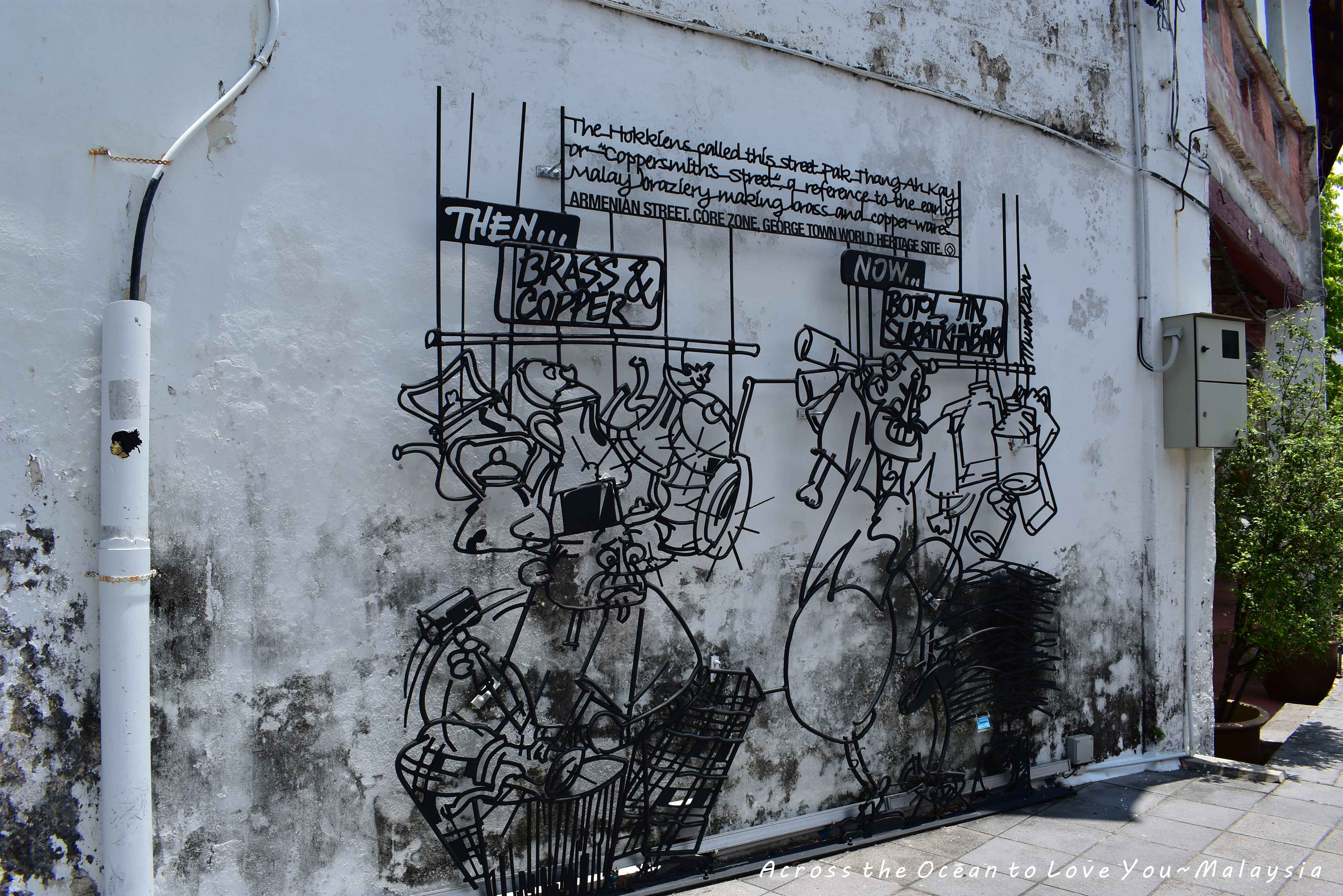 我很喜歡這個貓咪的壁畫,而這個姊弟騎腳踏車的壁畫應該是檳城最有名的,想與他拍這得沒有停過,幾乎沒有辦法拍到完整的壁畫。