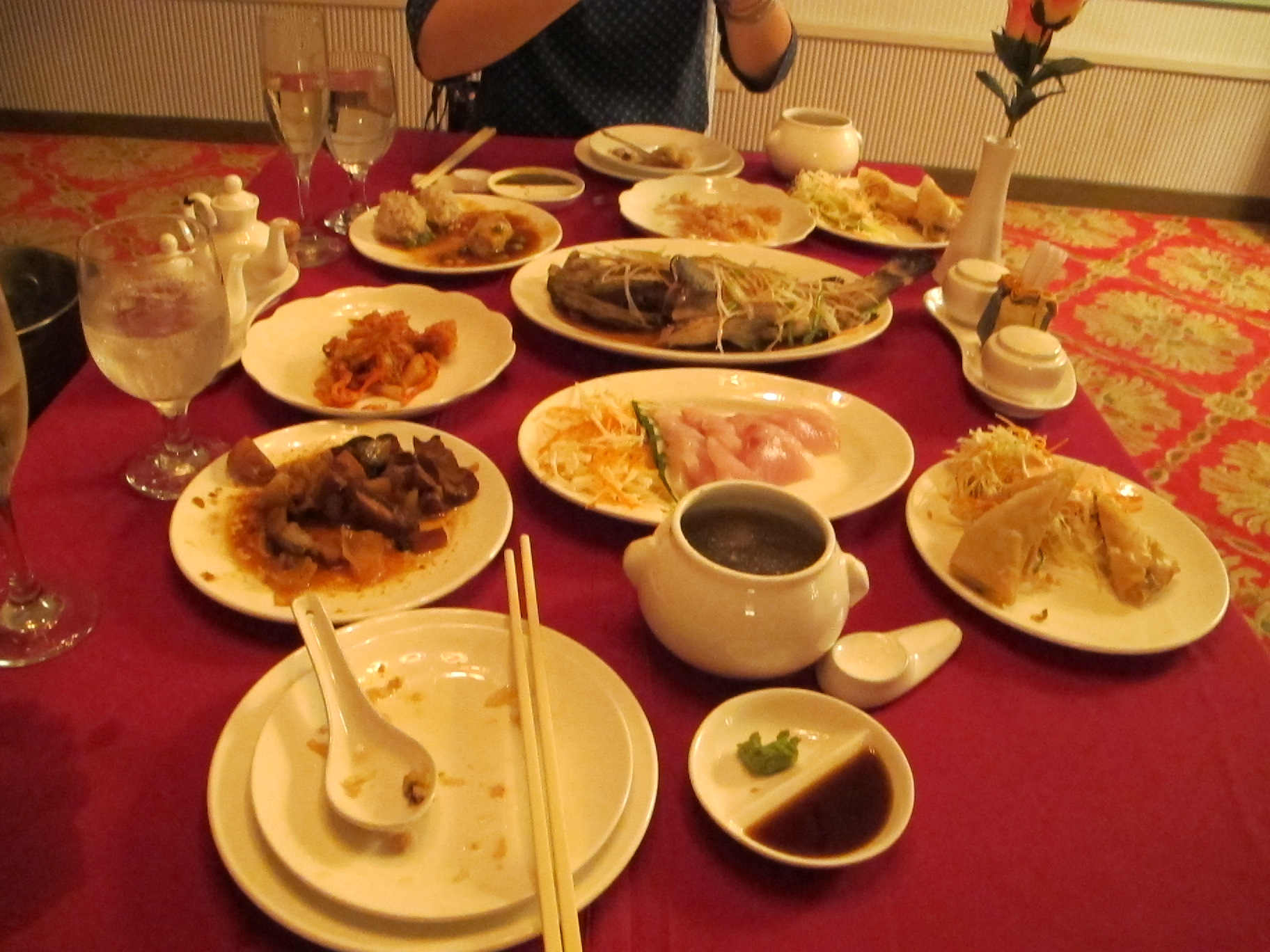 我們五個女生在燈光美氣氛佳,吃的開心,覺得帛琉大飯店真是不錯,也沒想到當時隨意定的蜜月套房,還加送了豪華的蜜月大餐。吃到最後杯盤狼藉阿~