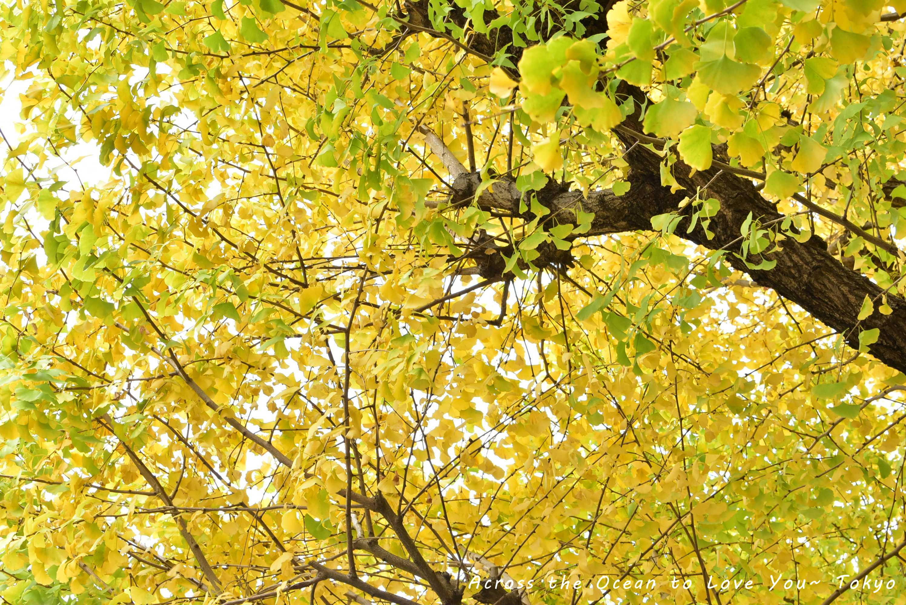 不知是不是天氣不夠冷,後半部的銀杏還呈現綠色的部分還很多。