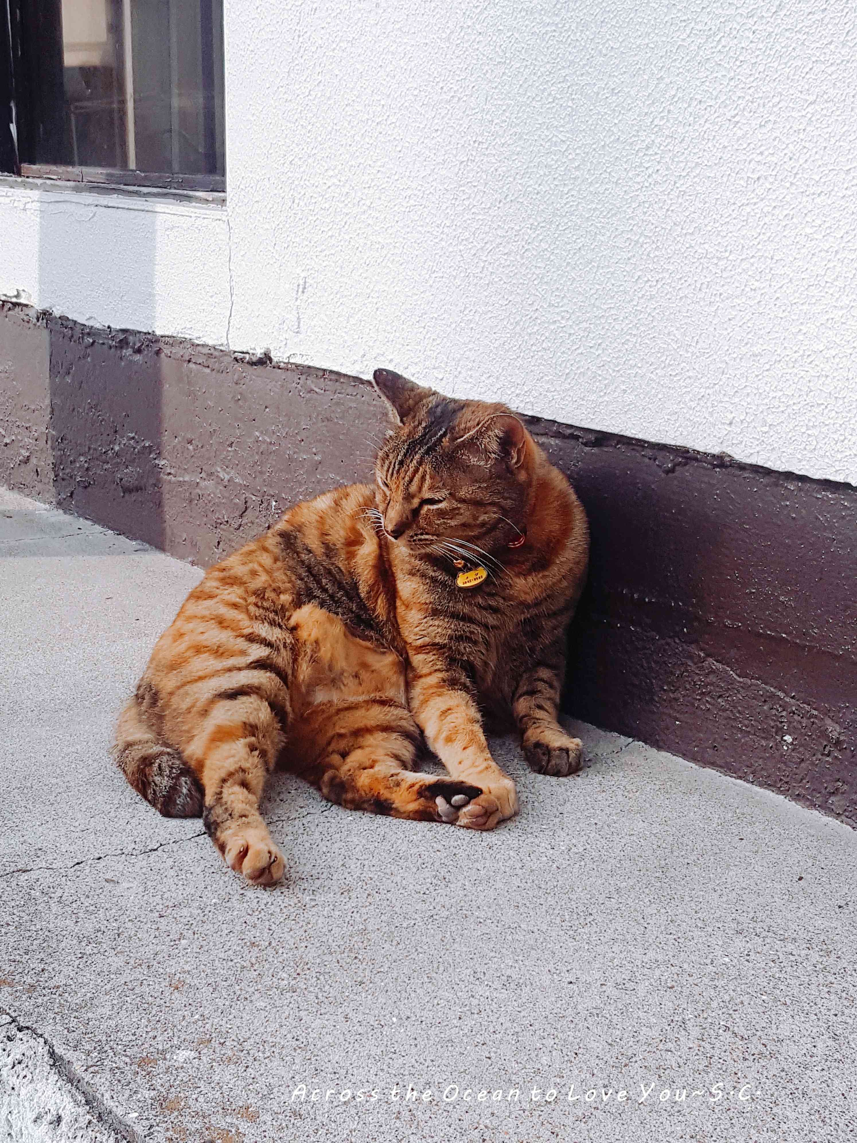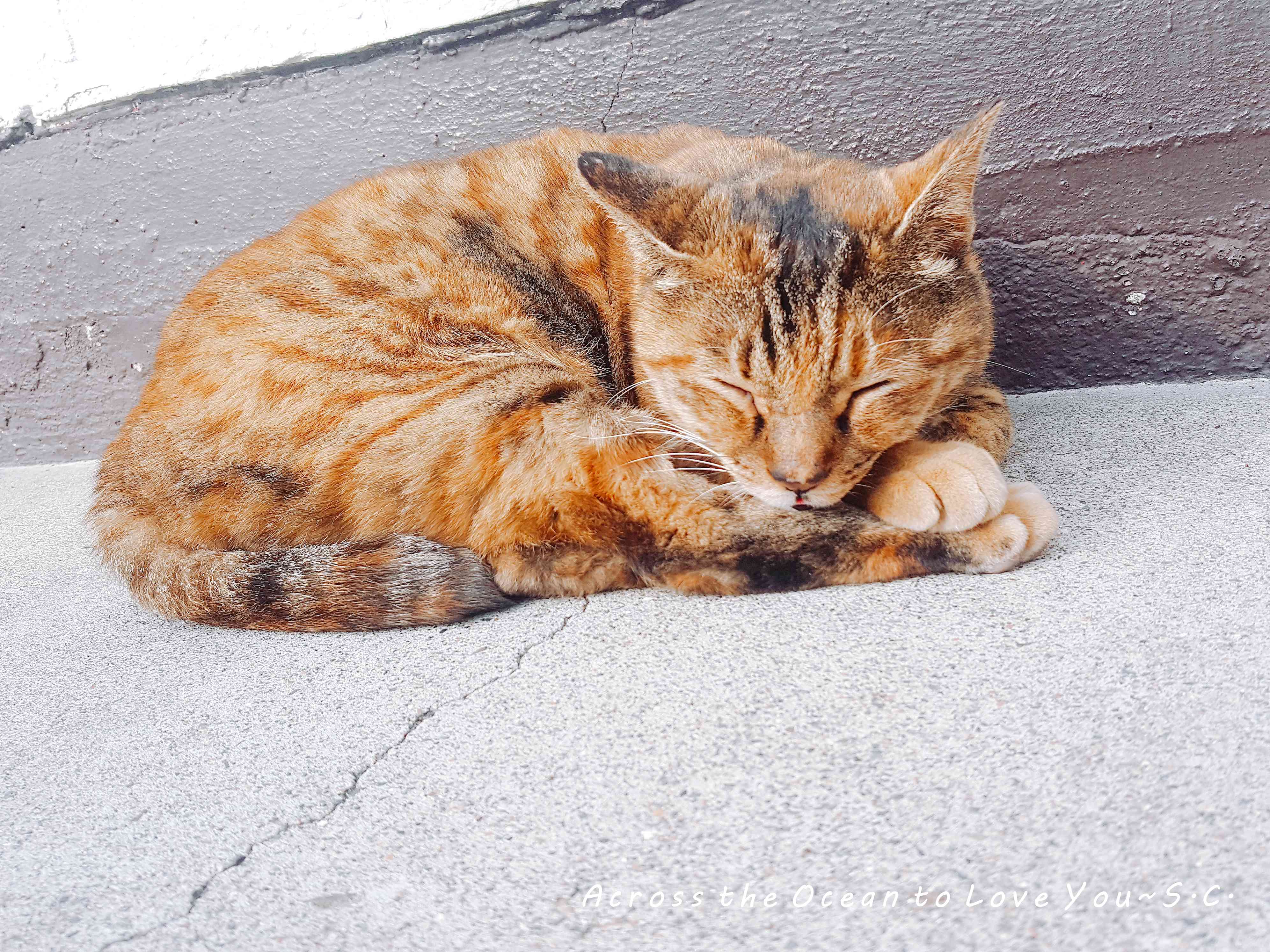 看著我們這幾個遊客興奮的對它拍照,想摸摸它,貓咪倒是倒頭就睡,享受溫暖的陽光。