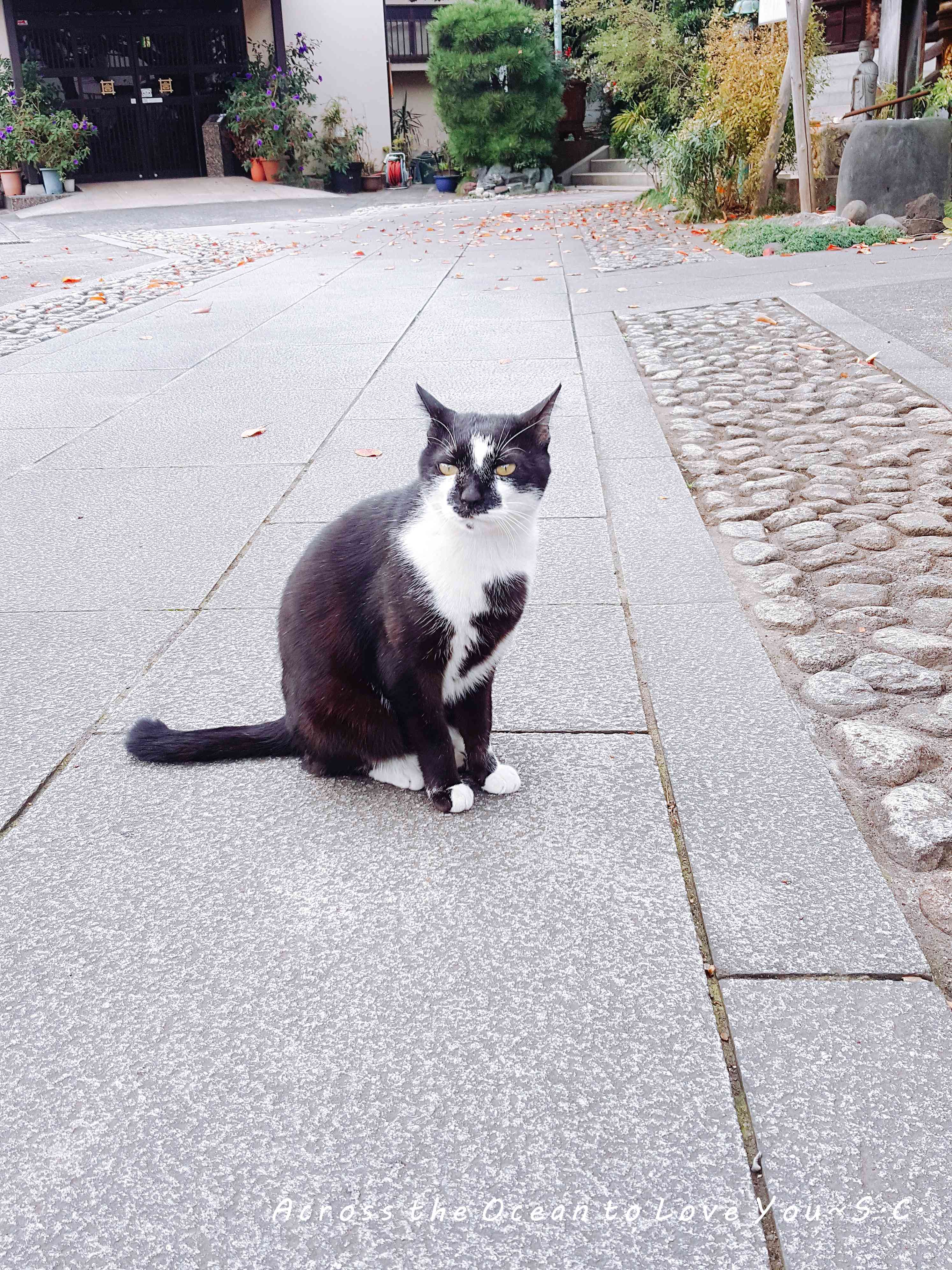 當我走進這各寺廟時看到這隻花白鄉間的貓咪,和他打了招呼,小花貓竟然快速的跑過來和我撒嬌,真是太可愛了。