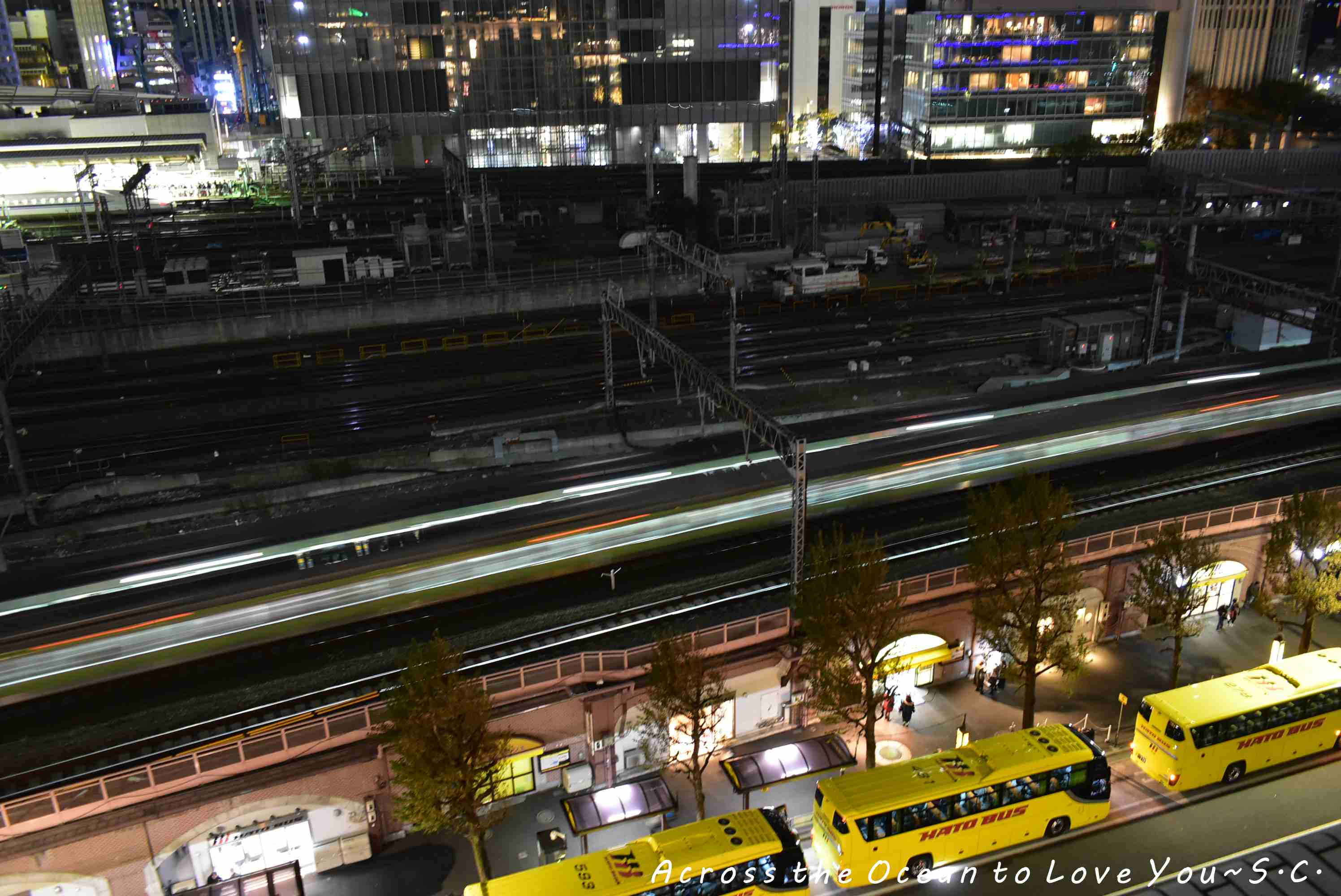空中花園一角可以看到東京車站的月台,及來往的電車。