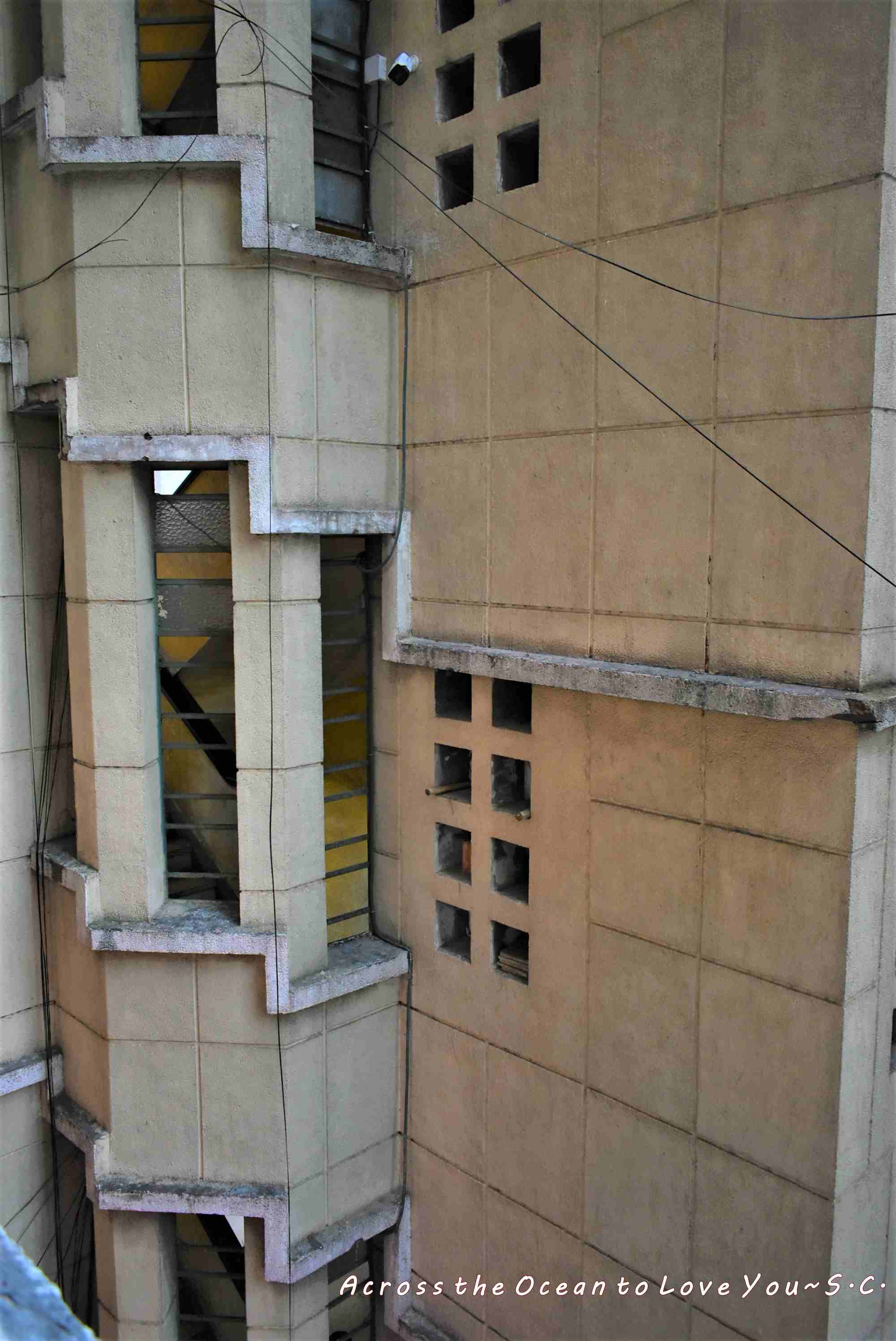 我望向大樓外,附近的老舊公寓也是如此有特色。