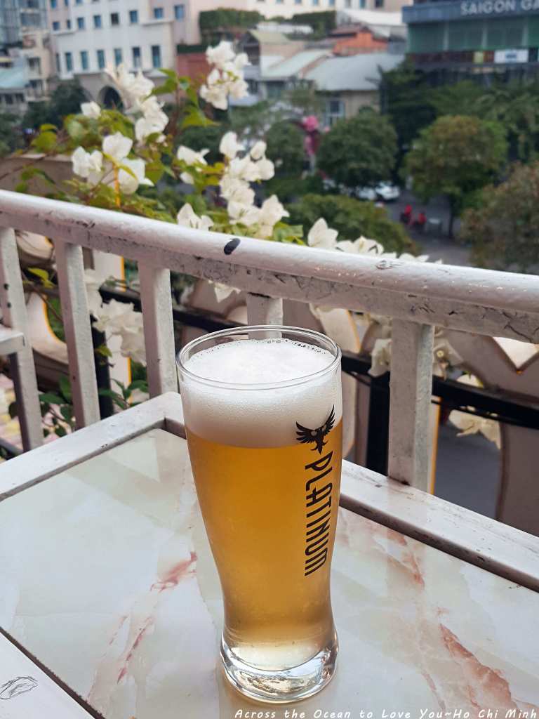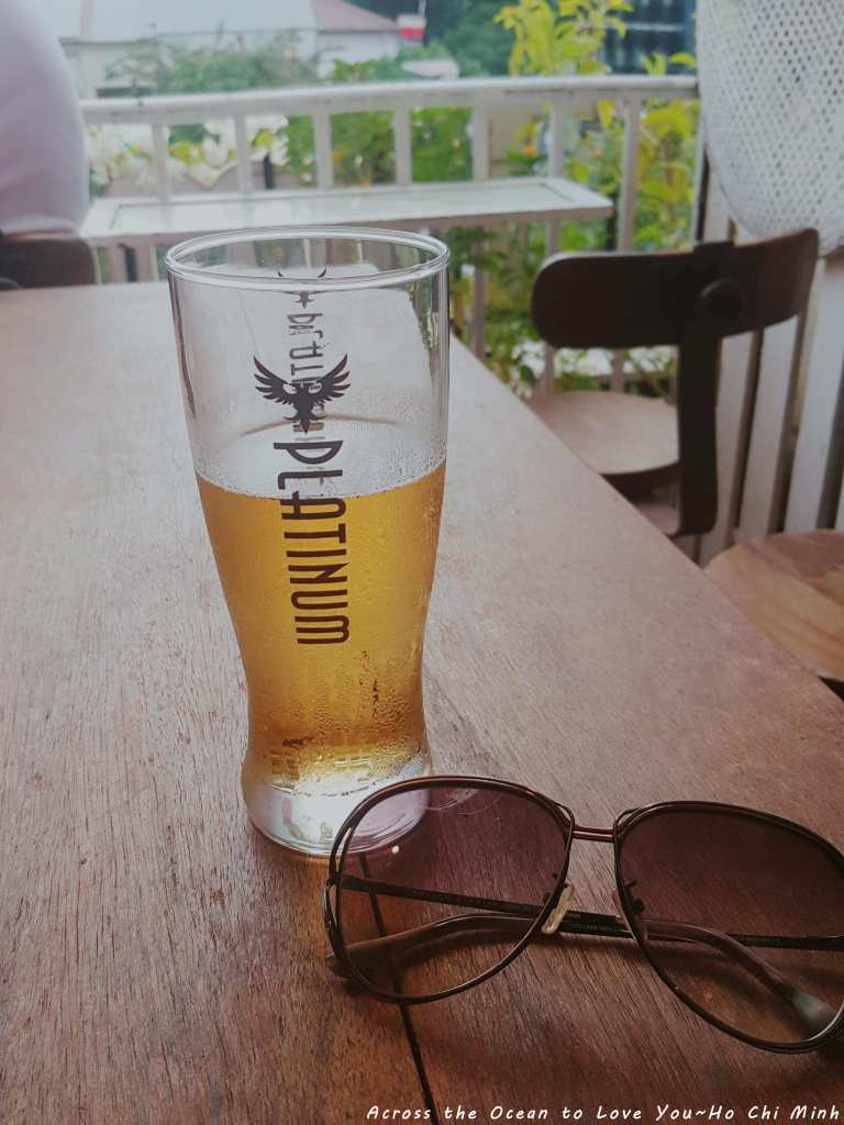 無法再喝咖啡了,這胡志明市一天至少喝了兩杯的越南咖啡,想說再喝晚上就別睡覺了,於是點了一杯不熟悉的啤酒。