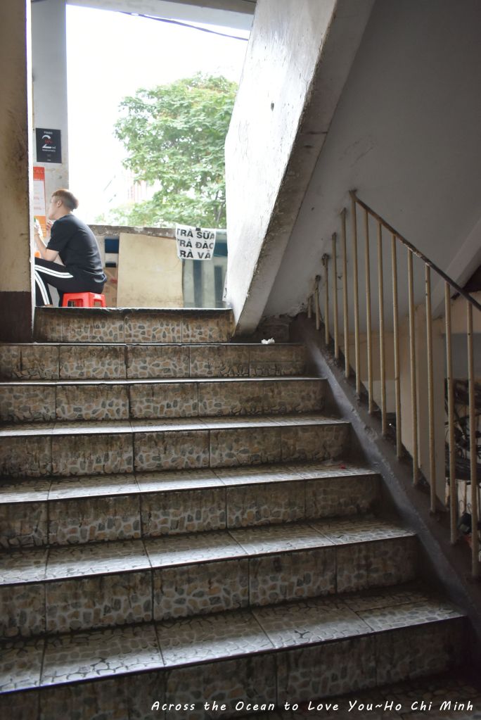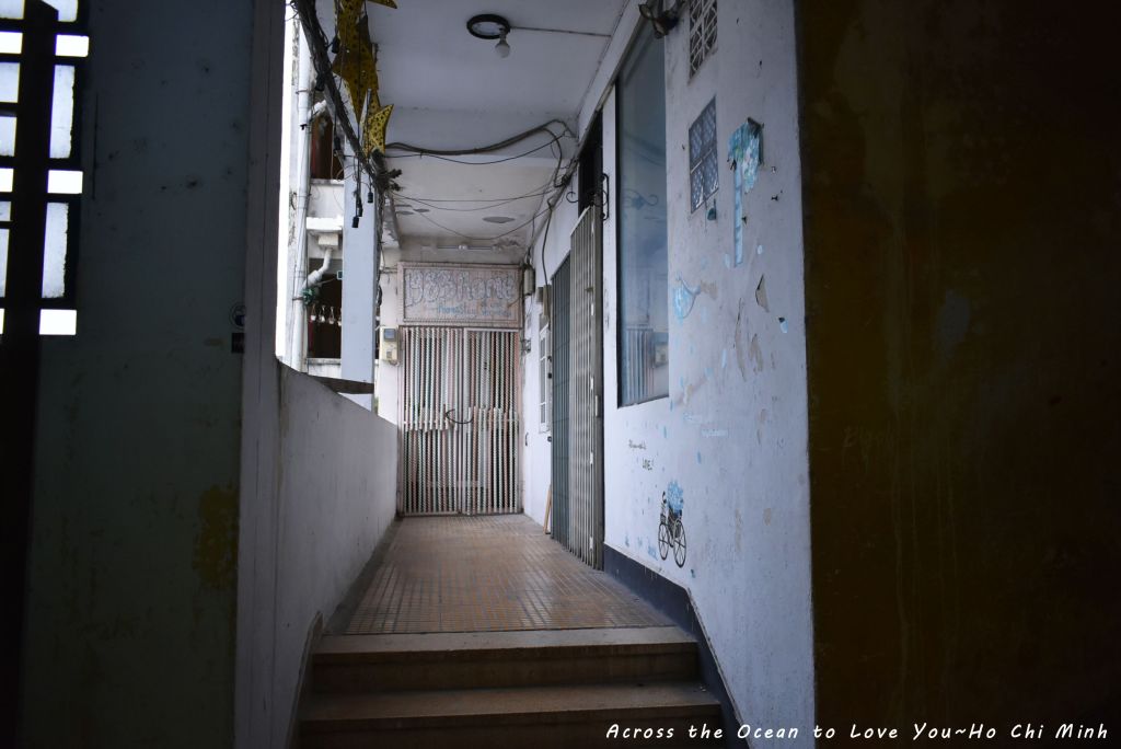 我一步步走上樓,在這斑駁的樓梯,看照片似乎不安全,其實現場隨時都有遊客的笑聲,畢竟所有來胡志明市的遊客都會來這咖啡公寓。