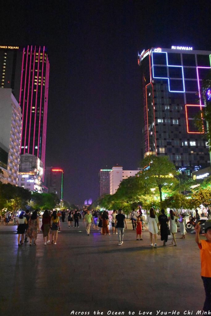 果真夜晚比白天更美麗,我漫步在阮惠街行人步行廣場上,晚上沒白天這樣炙熱,吹著風看著胡志明市最熱鬧的街景,看著這個國家拼命的將最美的一面呈現給世界的旅人面前。