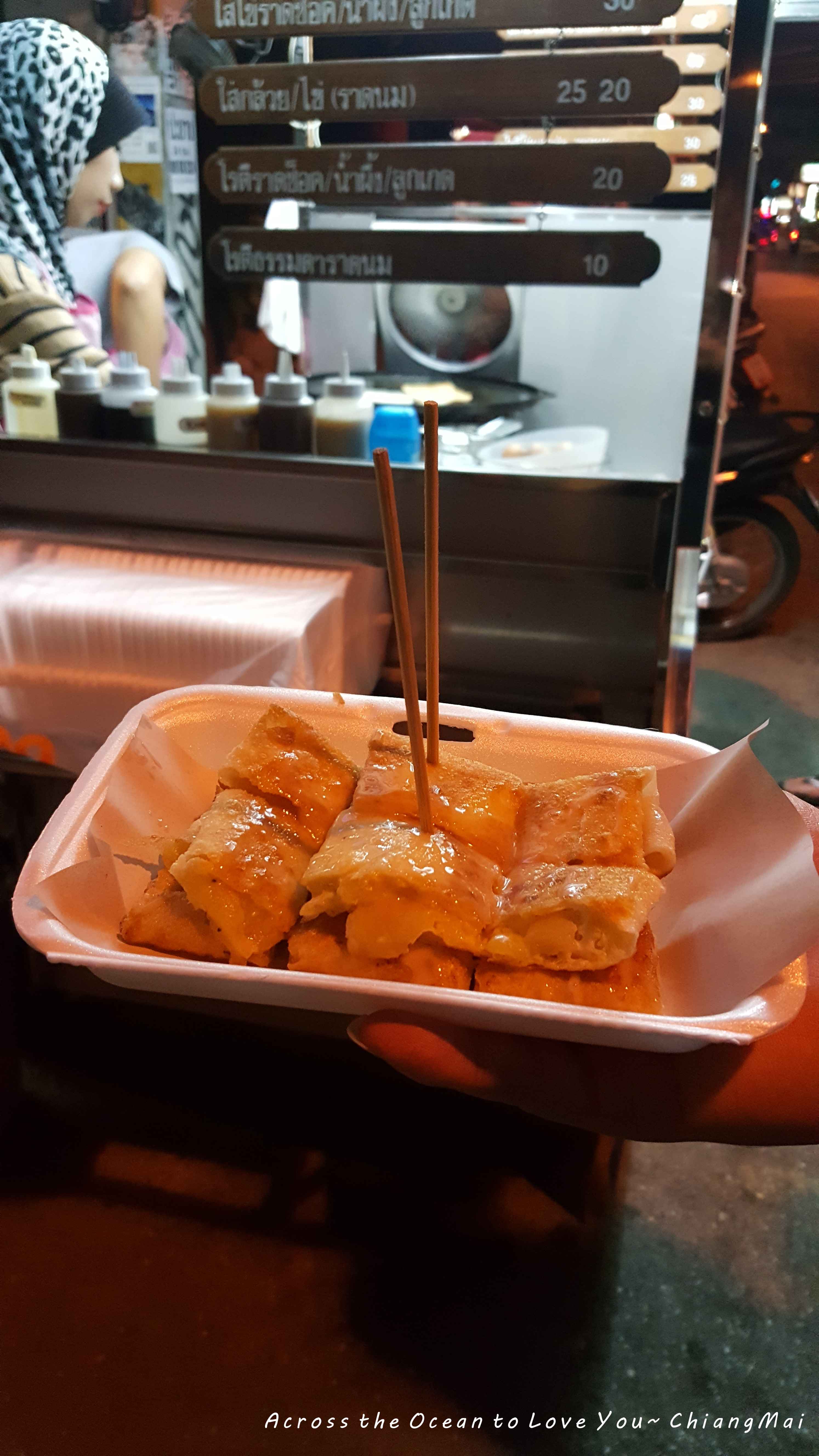 才吃完,走在巷弄裡,看到賣香蕉煎餅的攤位,馬上衝去買,也不少遊客也再買,這個讓我充滿泰國回憶的小吃。