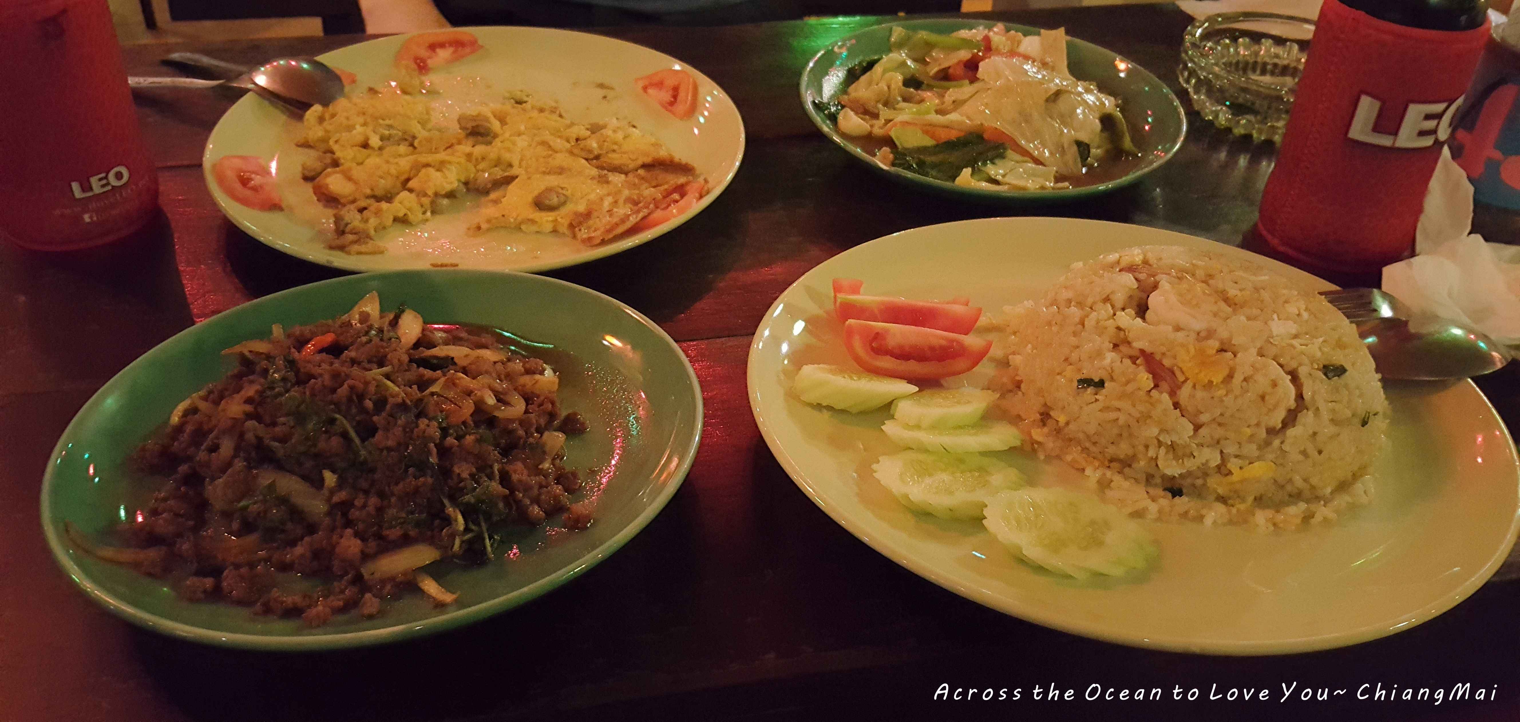 一放好行李,我們就衝到外面找吃的,附近一家二樓的餐廳,叫了幾個泰式美食,還加了泰國啤酒解饞^^