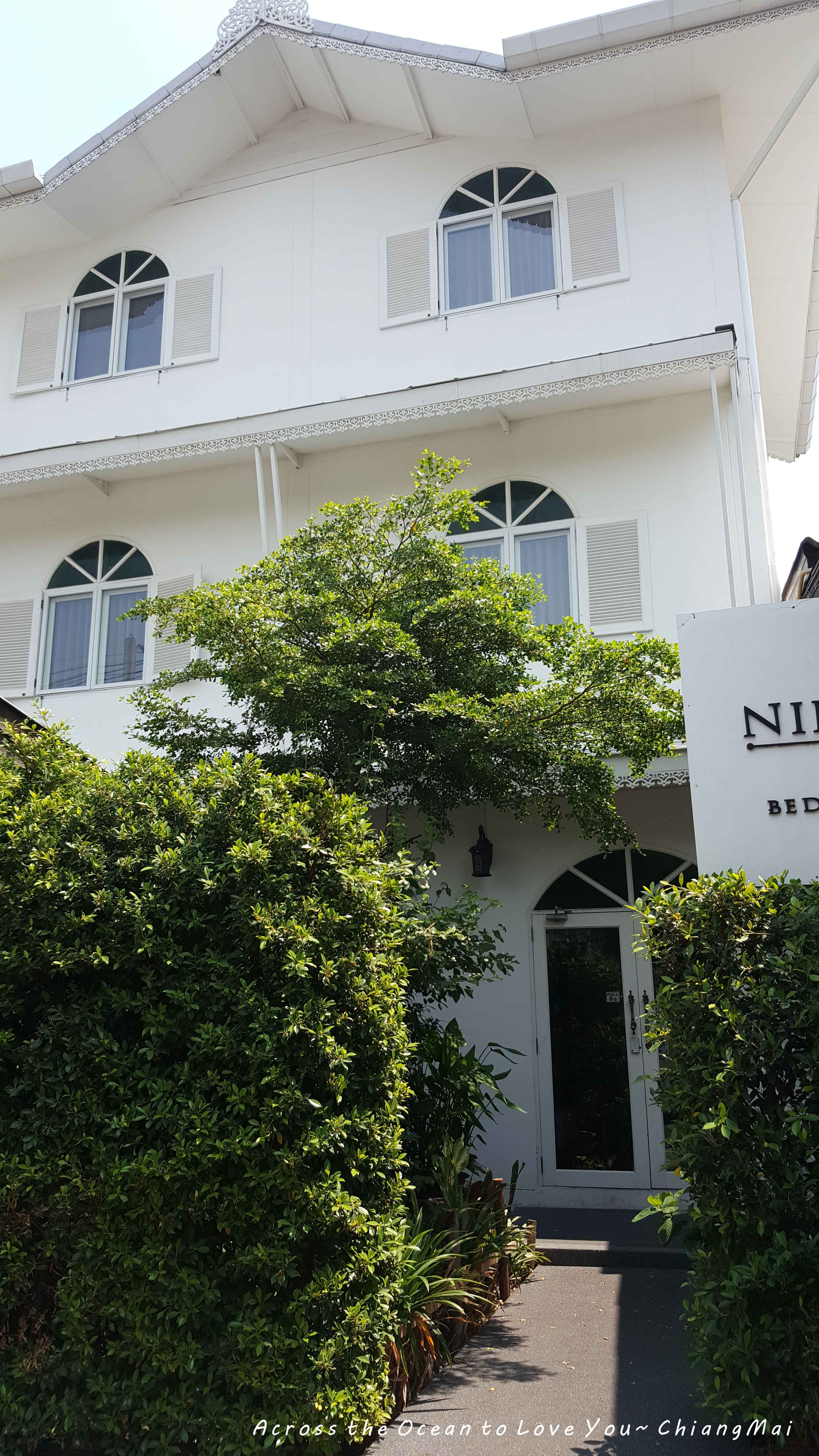 我選擇前2晚住在古城附近,Nidhra Lanna Hotel位在馬路邊一棟全白的建築物,當時只有三間房間,一層一間,超級適合想安靜的客人,我這次安排在三樓。