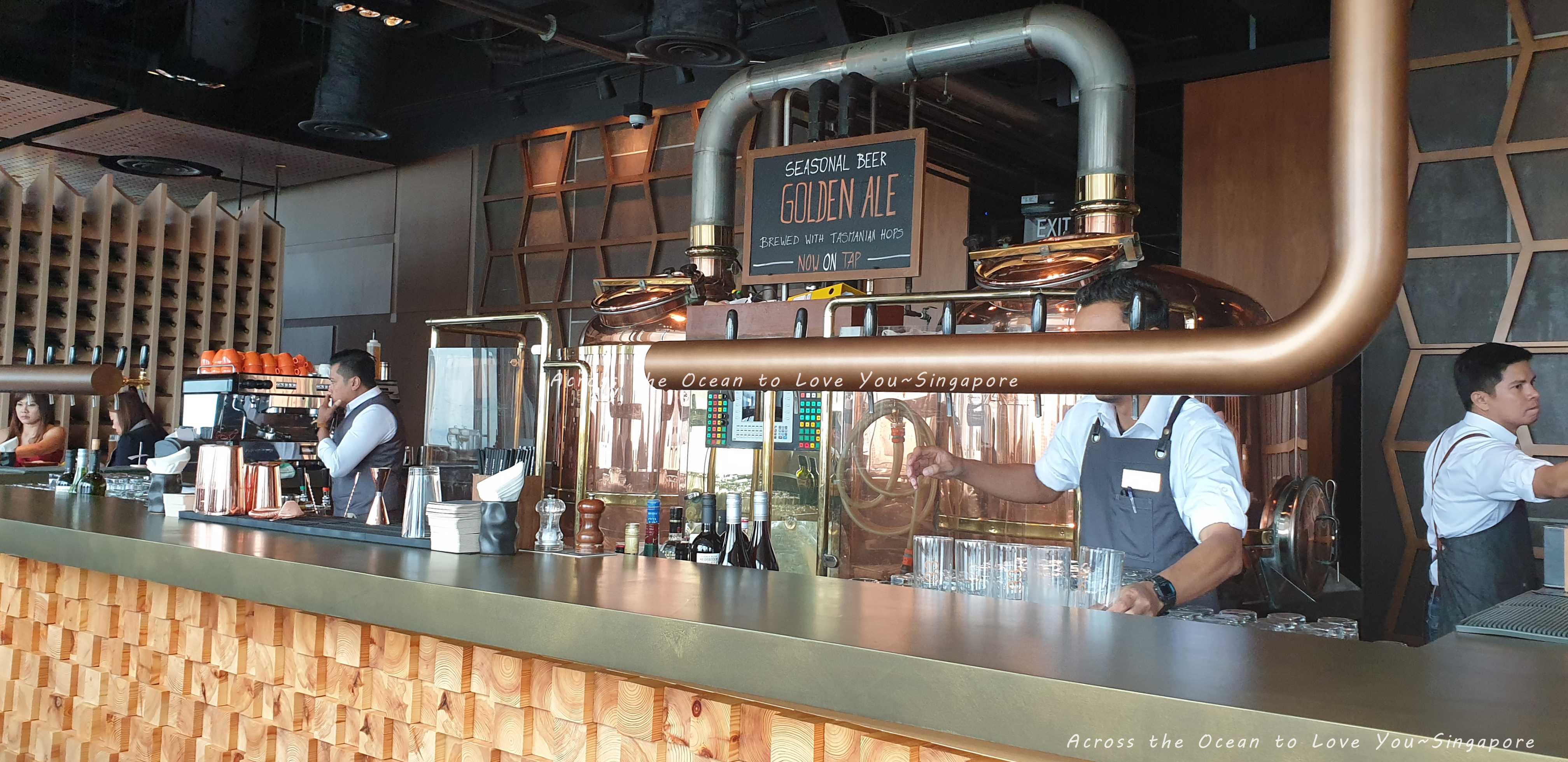 室內中間有著釀酒的機器及吧檯。我發現這邊的男服務生都蠻帥的😅😁。