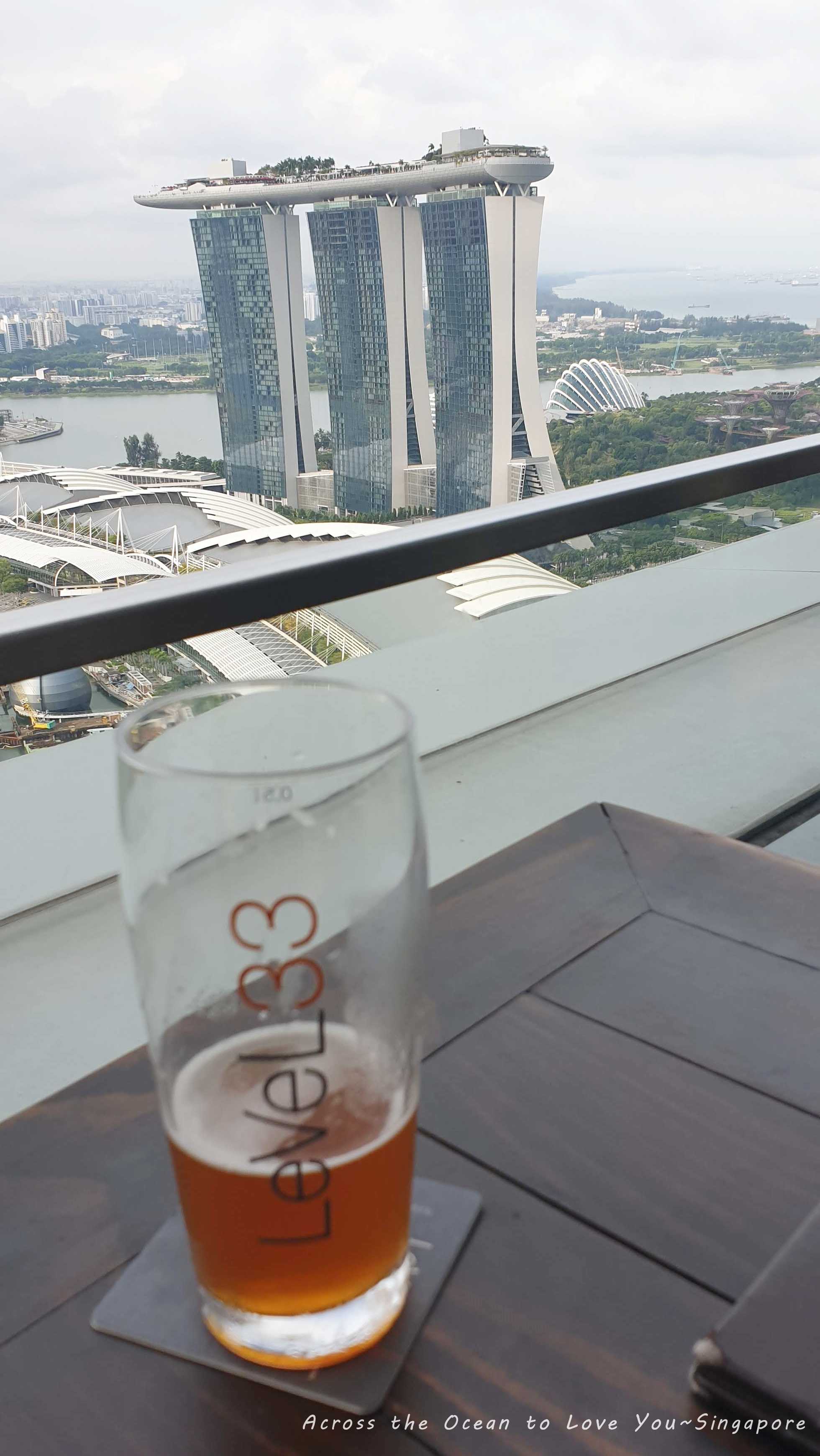 去年有機會到金沙酒店57樓的Spago高空酒店欣賞無邊際泳池及遠方的海景,但畢竟酒吧在建築物中間,這次再次尋找高空酒吧,看到有人介紹了LeVeL 33。世界最高的釀酒餐餐,可以看到最美麗的夜景,運氣好還可以訂到戶外位置欣賞Singapore的國慶煙火….我在餐廳的官網狠下心訂了週一17:30戶外的位置。本來想著隨著當天心情決定,但新加波的朋友對這樣高空景觀餐廳完全沒興趣..>< 但我不想放棄自己去嘗試的機會。走吧~