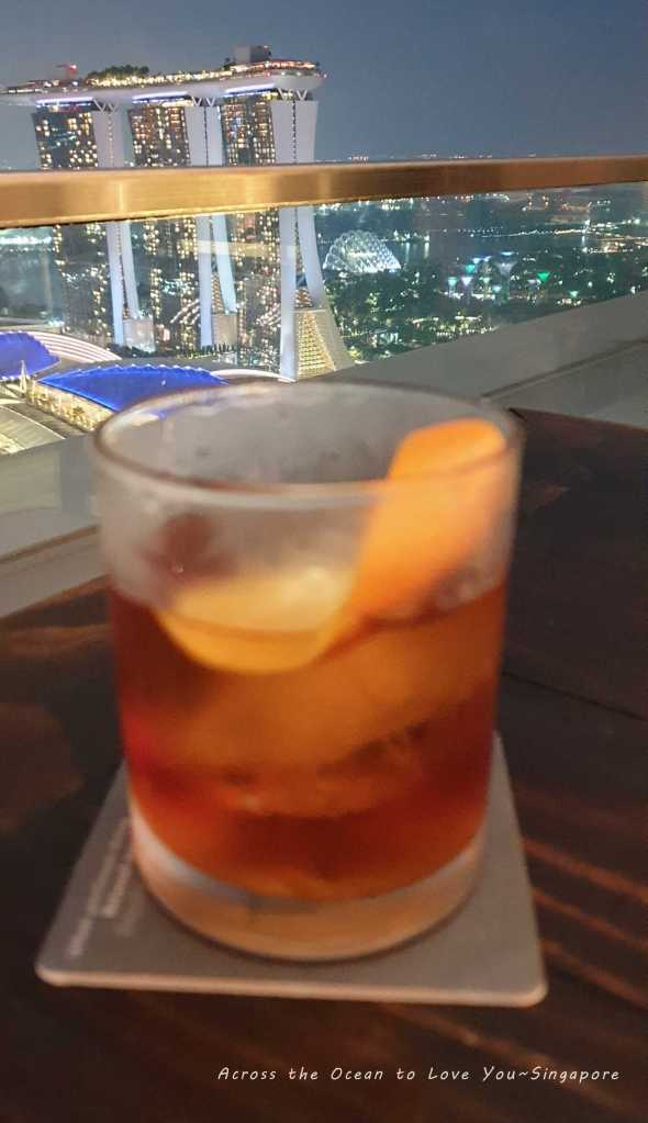 替自己點了杯Rum Old Fashion(Aged rum, simole syrup)做最後的結尾吧,工作人員替我送來金黃色的Old fashion,在這美麗的夜景前真是不真實阿。