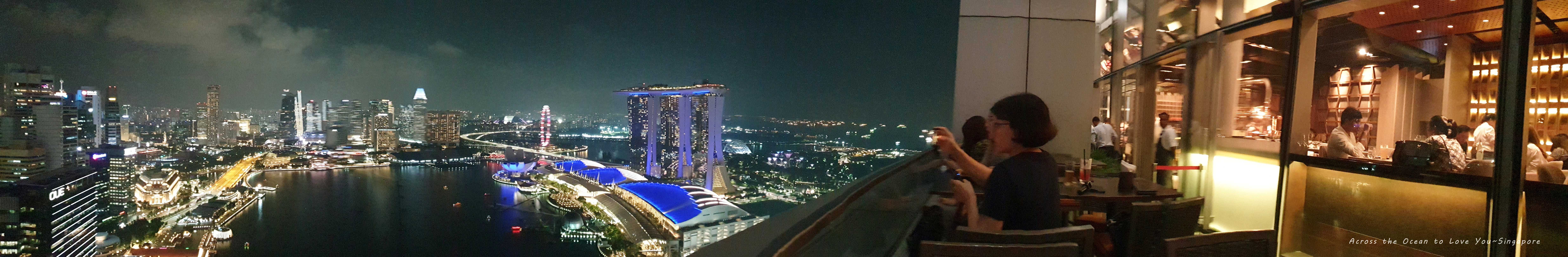 夜幕低垂,身邊的客人都興奮的拿起相機準備拍下濱海灣最美的景色。我前面一桌應該是一對韓國母女,後面一桌應該是興奮的一家人。