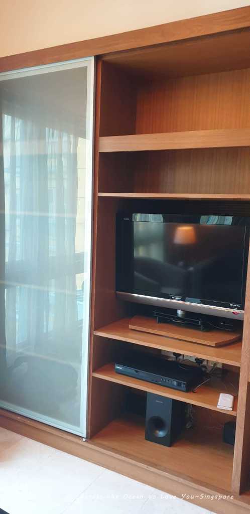 客廳有一套視聽組,但我住飯店幾乎沒有看過電視。