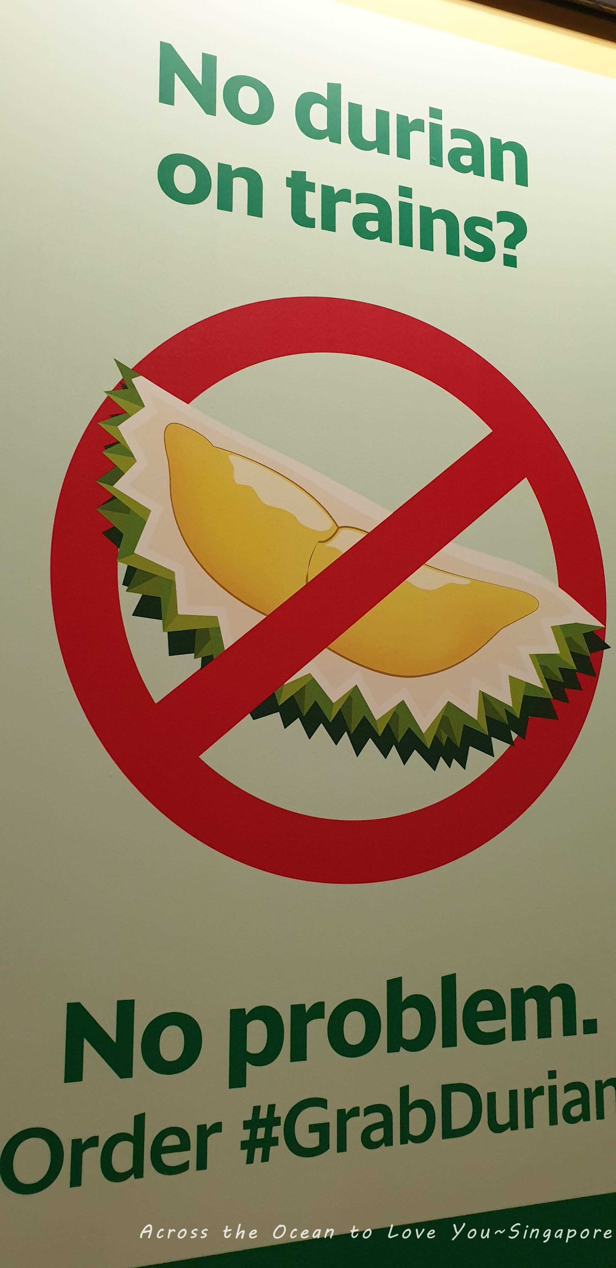 在地鐵月台上看到這個提醒,超顯眼…不可以帶Durian搭捷運,我上次Singapore電影院還聞到有人吃 Durian ,差點崩潰想罵人,但我朋友就超愛,哈。
