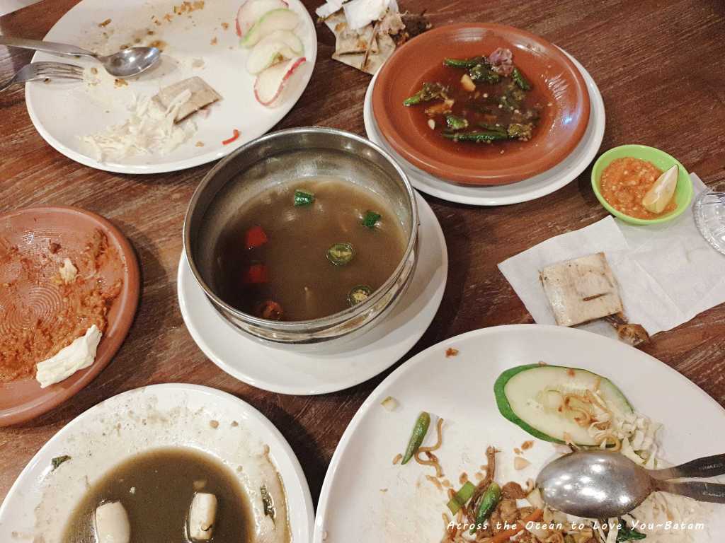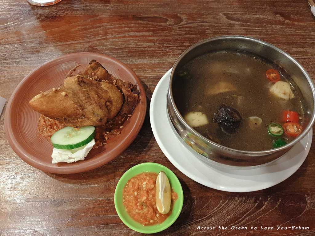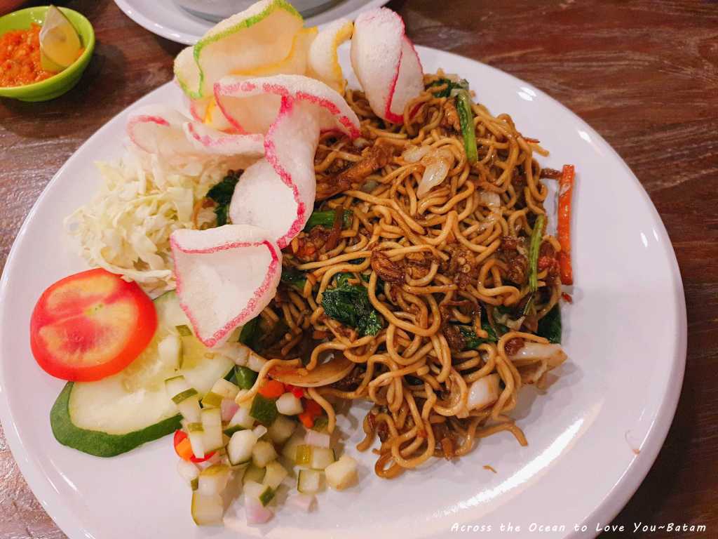 Mega Mall Batam Centre 商場東西和一般我在泰國、大馬、新加坡看到的都不同,幾乎所有的牌子我都沒看過。先到超級市場買了一堆印尼泡麵和水,準備來找吃的,第一晚就不去找附近有的海鮮餐廳,googel看看有那些評價還不錯的餐廳,於是我們走進一家印尼菜餐廳。