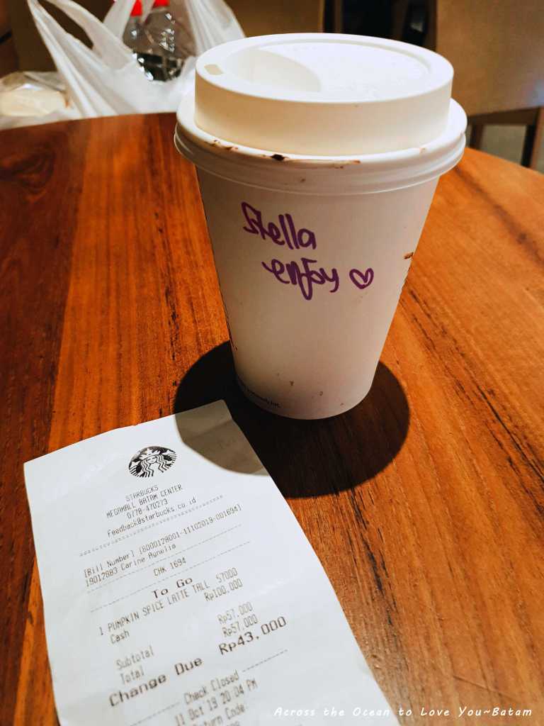看到萬聖節新的產品Pumpkin Latte,明明已經很撐了還是跑去買了一杯,印尼盾57,000。