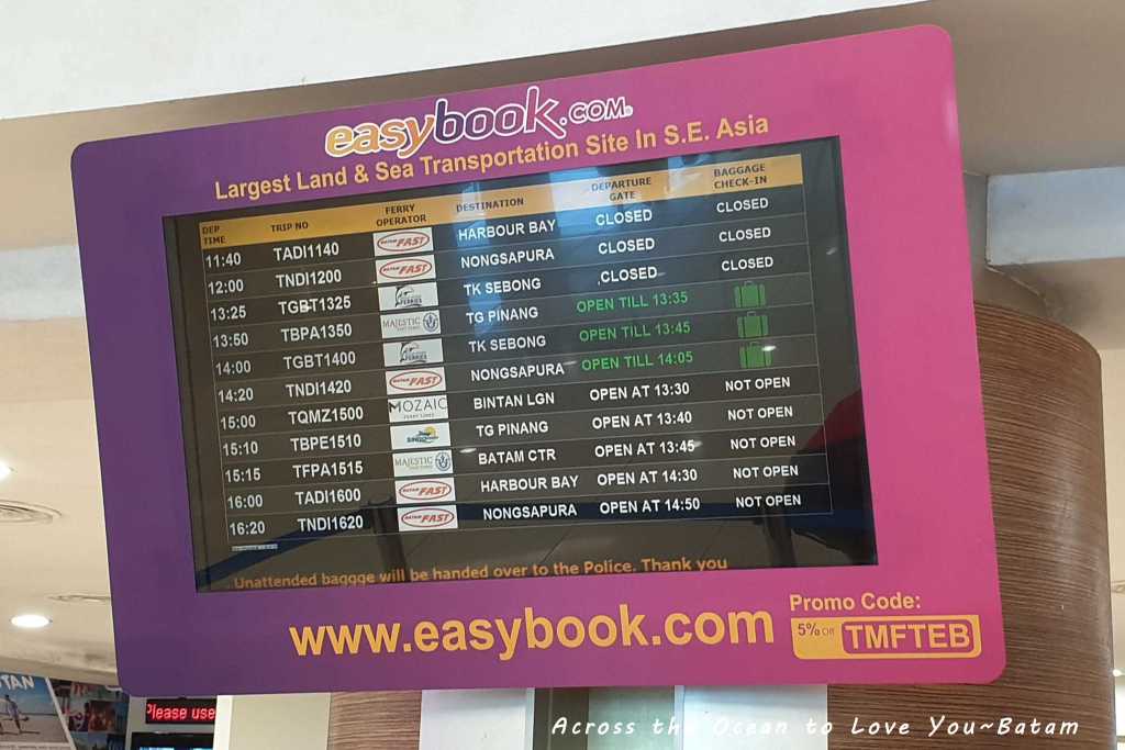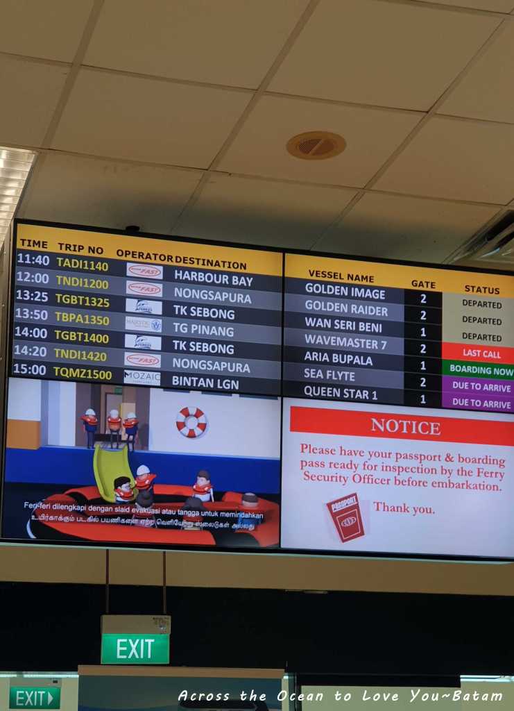 一路從市區搭乘Grab到的Tanah Merah Ferry,這邊離樟宜機場蠻進的,還有往機場的接駁車,不過附近真的蠻荒涼的。我們週五下午二點的船班,還好大廳並不擁擠。