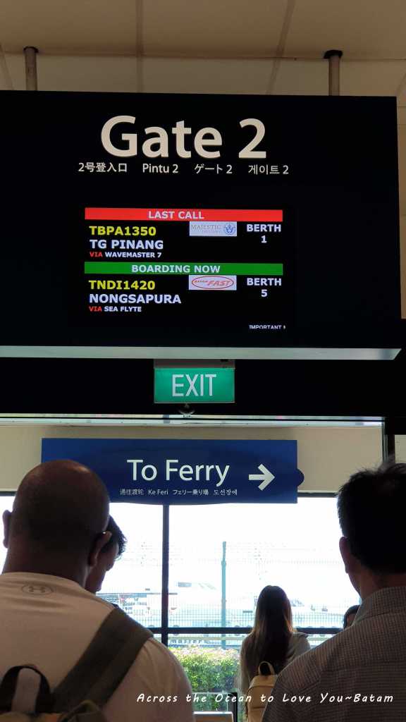 看到這麼多人也不用擔心,螢幕上都有將要搭乘的船班及砸口。這次我的船班是GATE 2。終於輪到我們登船了。