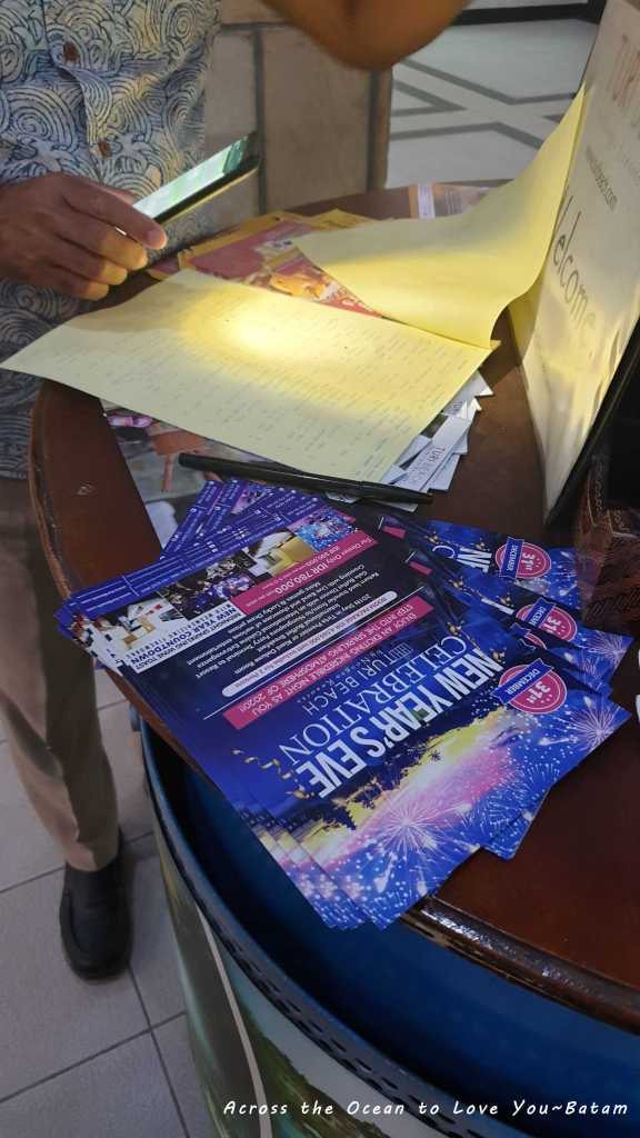 前往預約的飯店,這邊形成多半是在Singapore當地旅行社買包套行程,傳票、住宿和來回接送。工作人員仔細核對我們的資料。