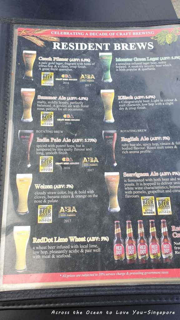 找了戶外位置,再三確認是我要找的店RedDot BrewHouse。酒單上各種店佳釀的beer,仔細看著英文簡介。