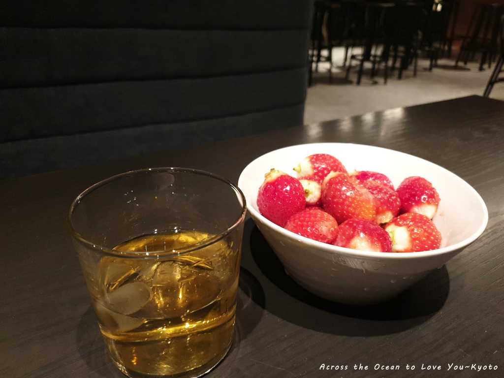 在扶見區超市買的草莓,配上清酒,我一個人在大廳享受著。