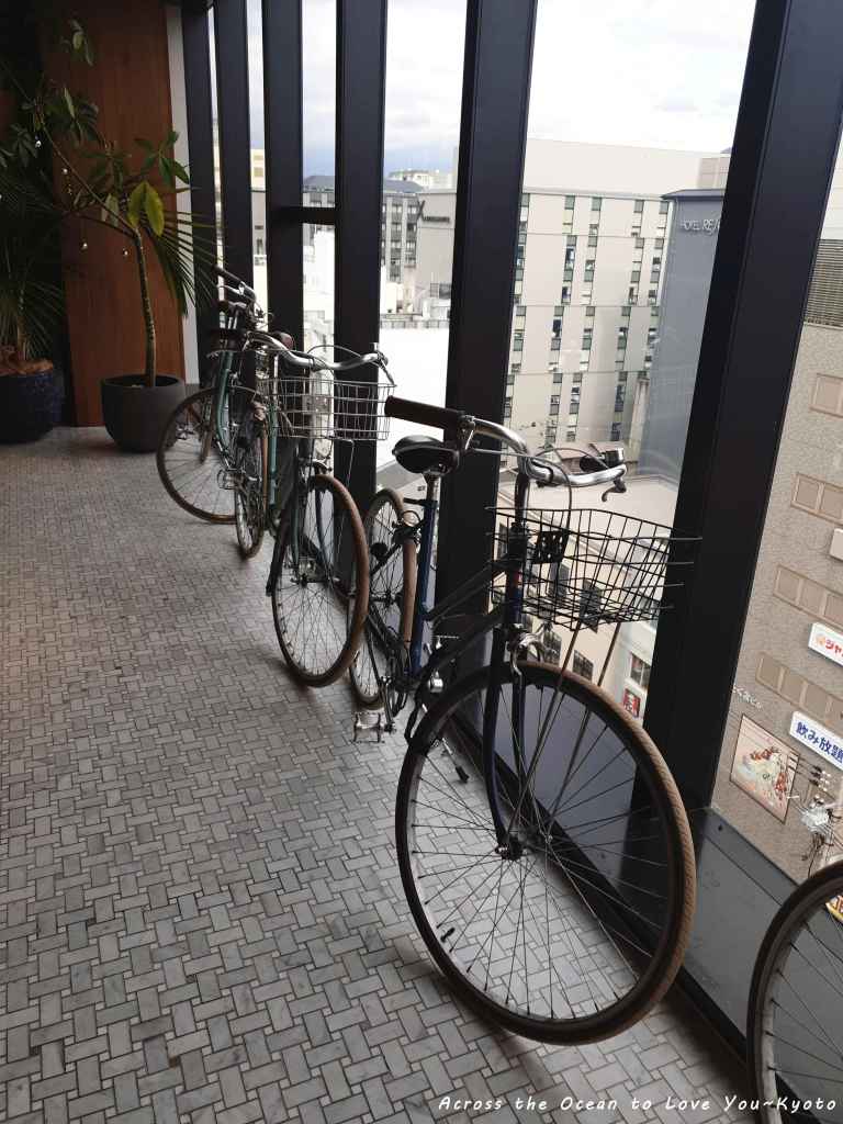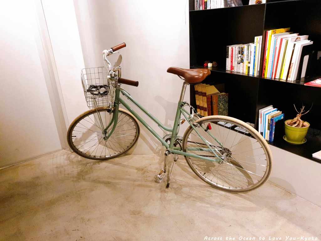 覺得The Millennials Kyoto(京都千禧一代膠囊旅館)提供的租借腳踏車真的很可愛,也成了交誼廳裝飾一部分。