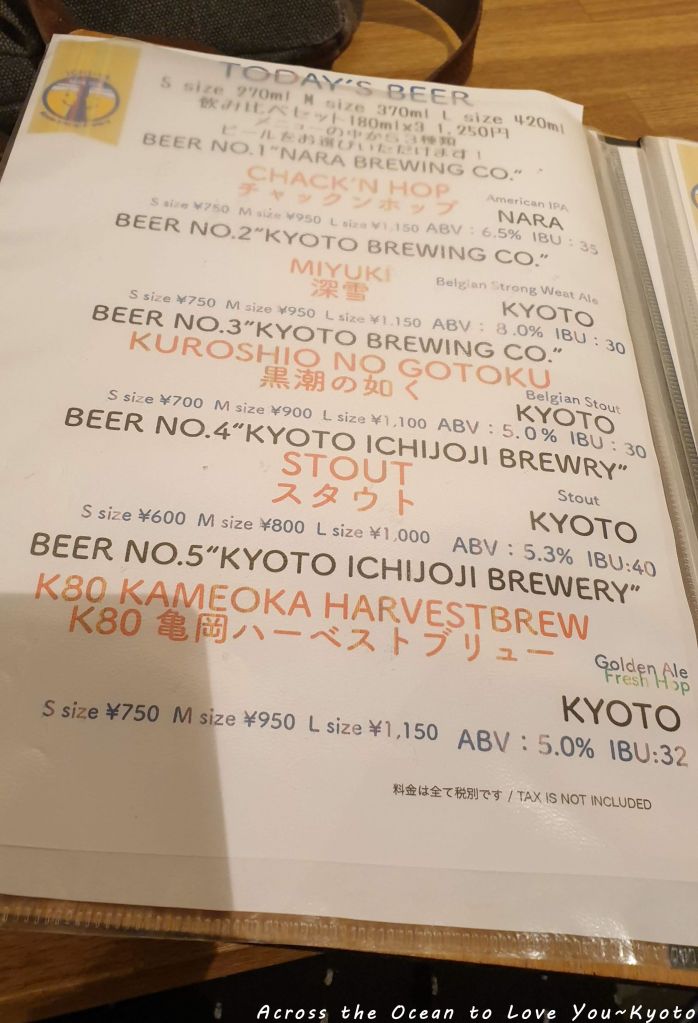 在決定住在The Millennials Kyoto(京都千禧一代膠囊旅館) 後,我googel附近有什麼特別的店,我找到了BEER PUB ICHI-YA🍺,這是一間賣現釀beer的餐廳。