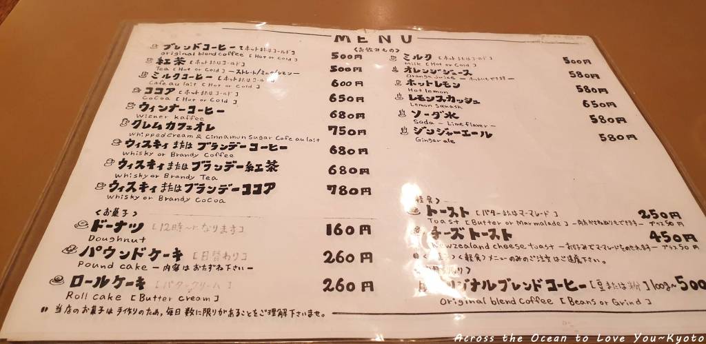 在住宿 The Millennials Kyoto(京都千禧一代膠囊旅館) 期間,我googel附近的咖啡廳,發現了二家很有歷史的老咖啡廳,其中一家就在青年旅館對面街上,某天晚上我決定要去試一下老式風味的日本咖啡廳是怎樣的氛圍。