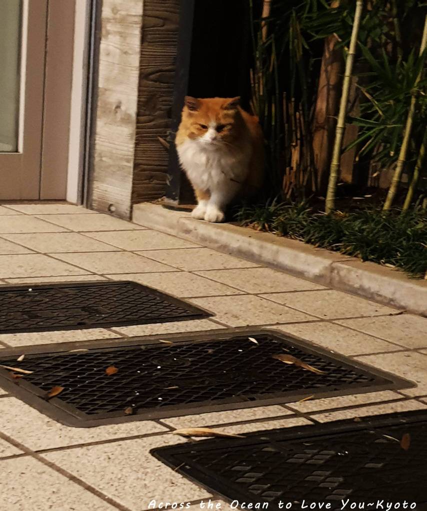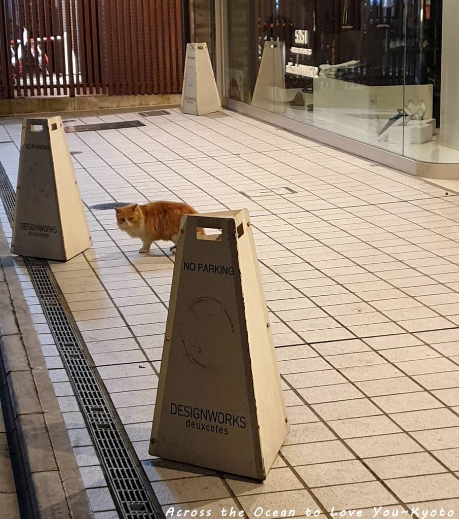 我開心的輕聲呼喚著貓咪,他看到我這怪怪女生,開始小跑步離開,這麼漂亮的毛髮應該是家貓吧。夜晚的河原町三條巷弄裡真是有趣。