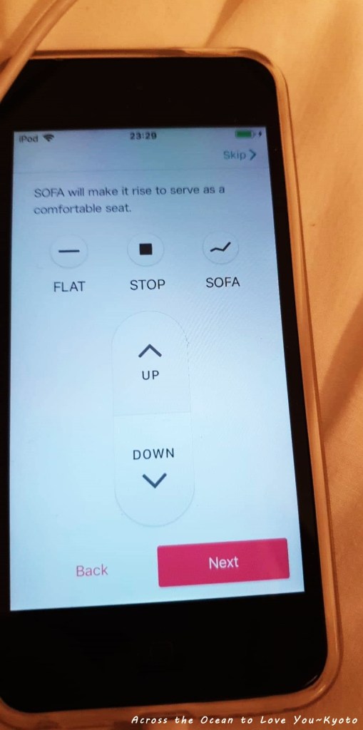The Millennials Kyoto(京都千禧一代膠囊旅館)最大特色就是這個設計,用Iphone設定床Flat或是升起當Sofa。