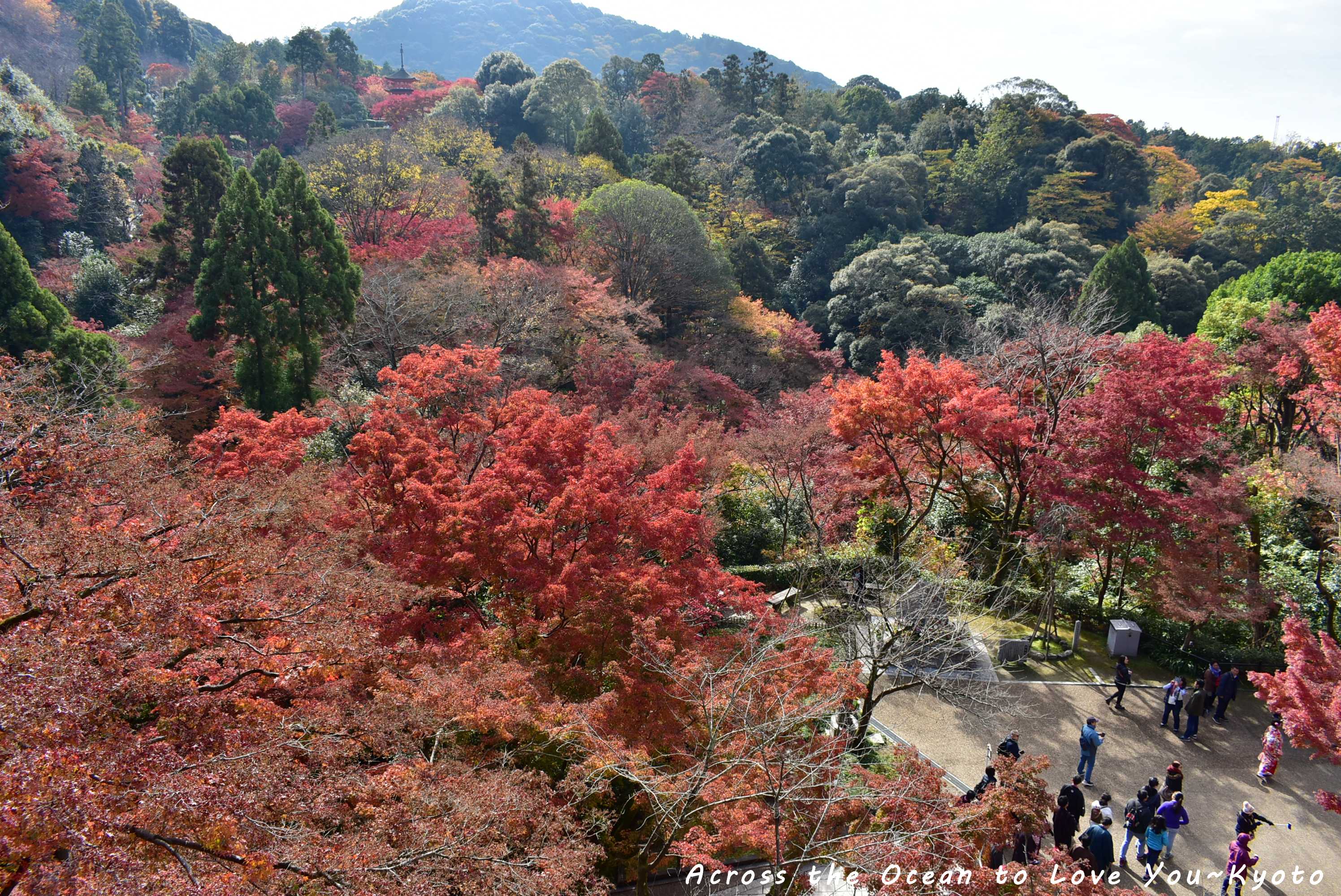 清水舞台前遙望整個楓葉林,紅綠交間。