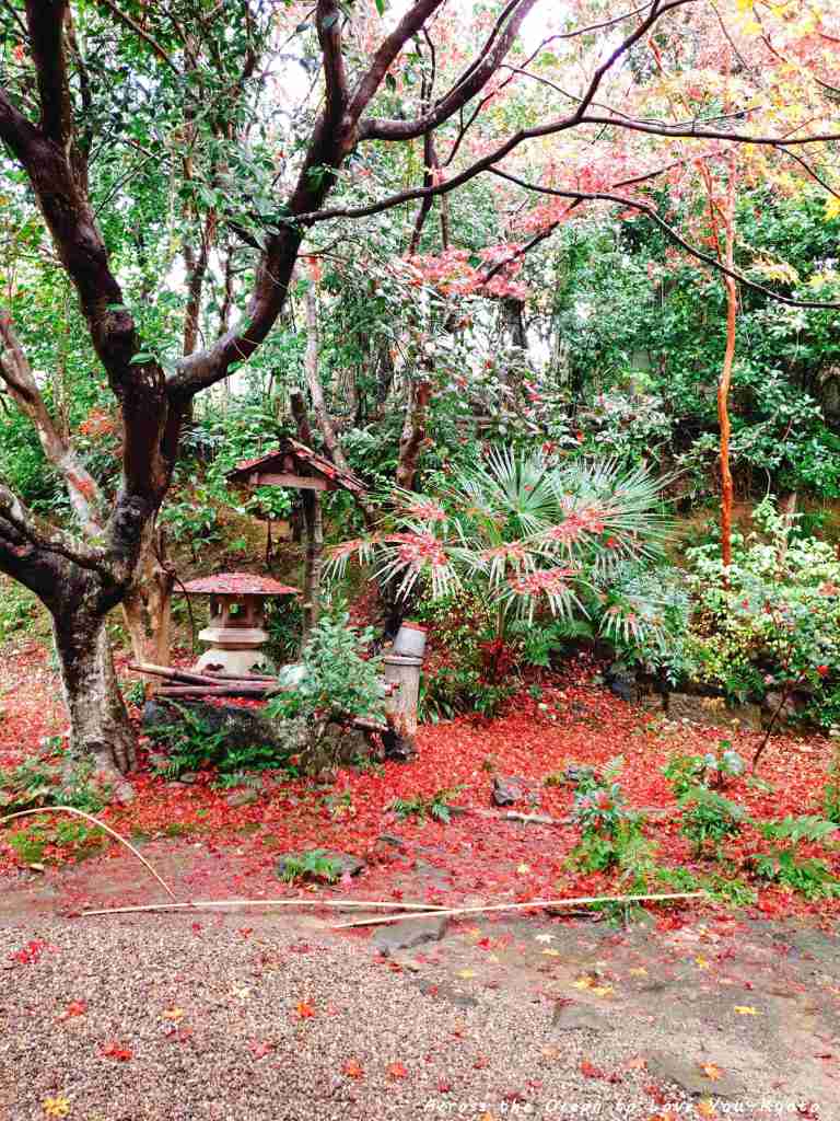 看完常寂光寺、址王寺後,嵐山的雨似乎小了一點,我的球鞋感覺都快濕了,身上也感覺越來越沉重,打開googel導航,我想找這個隱密的寺廟 厭離庵。