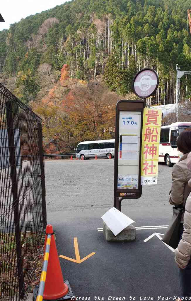 剛在路上有看到巴士,我在溫泉旅館前路口看到了公車資訊,哇~這裡有從京阪出町駛、地下鐵國際會館駛巴士到這,但班次非常少,若要坐巴士到這或回京都市區,我想應該要非常久吧。