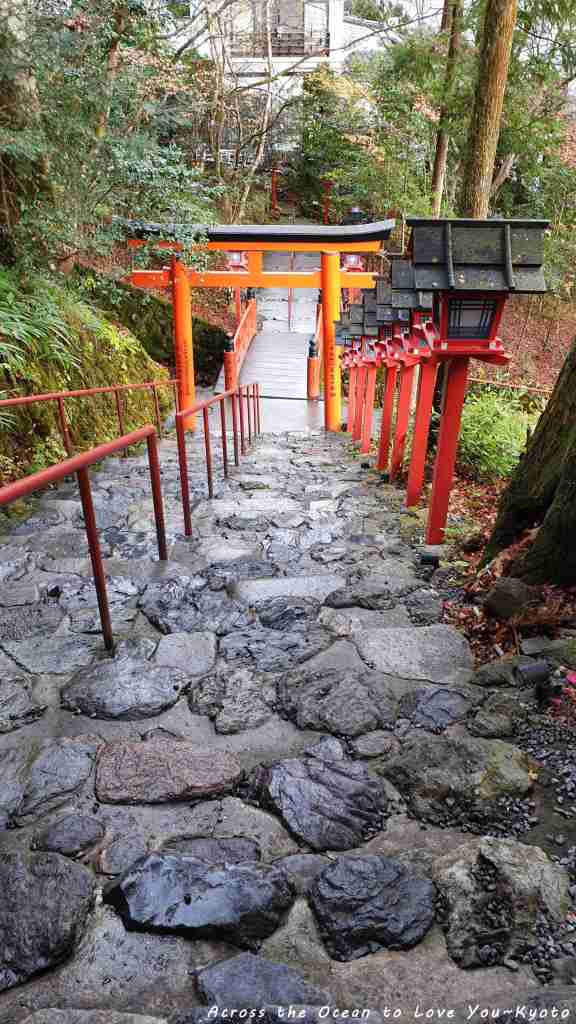 貴船神社已經在我眼前了, 紅色的鳥居,紅色的木欄杆。