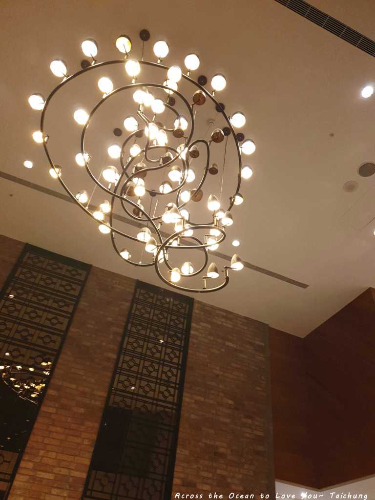 挑高的大廳,有著裝置藝術燈飾,我蠻喜歡這個燈的。