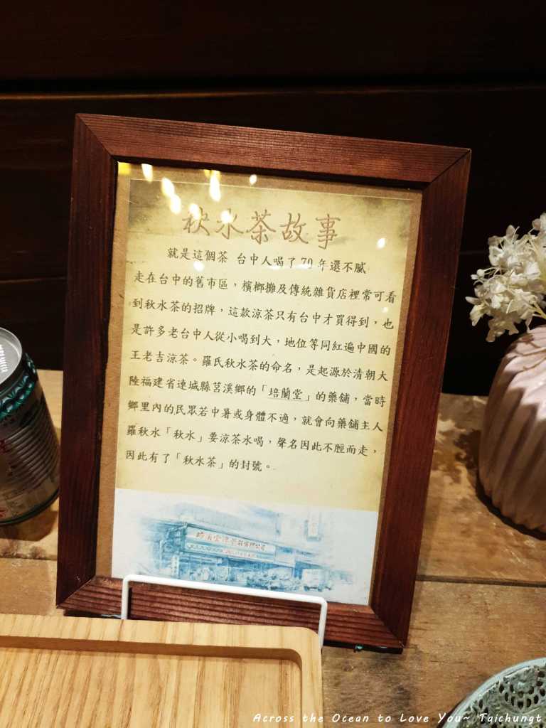 仔細看著這個"秋水茶"的介紹,這家飯店很多復古元素,保留著老台中的一些特色,很用心飯店。