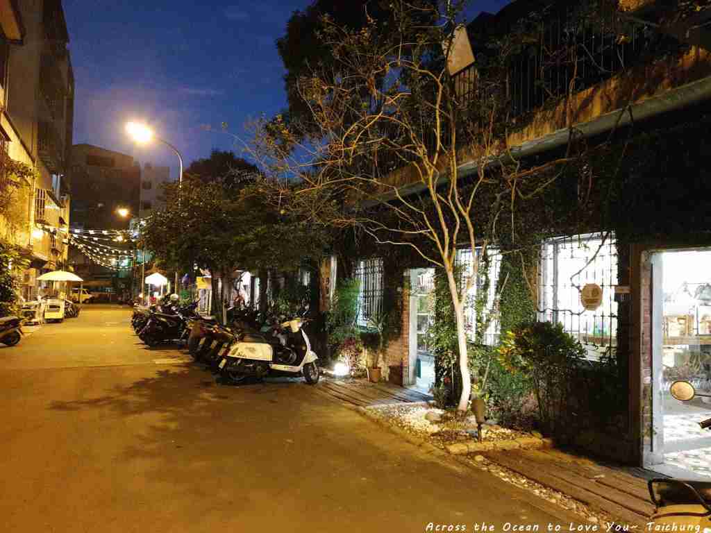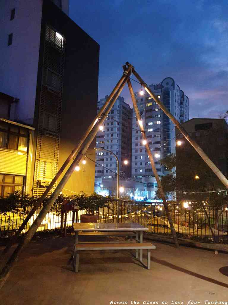 晚上我又再次來到,巷弄裡昏黃的燈光,對應的住家及對面浪漫的燈飾,突出卻又協調。