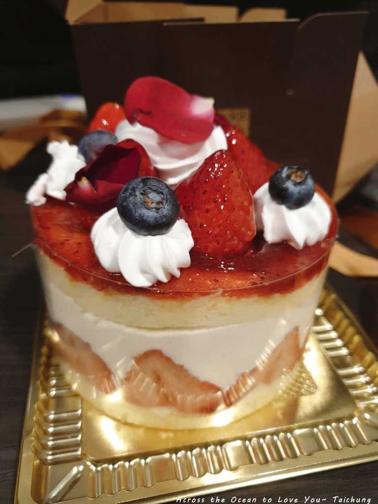 買了季節限定的日式草莓生乳蛋糕,,5吋要價$350。草莓狠心新鮮好吃,蛋糕部份我就覺得比較普通了😋。