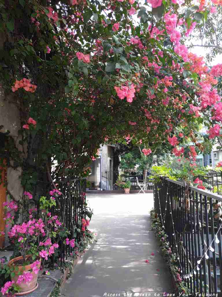 哇~我喜歡這個九重葛裝飾的小鐵門,雖然只是普通南部多有的花種,但這樣搭配真好看。