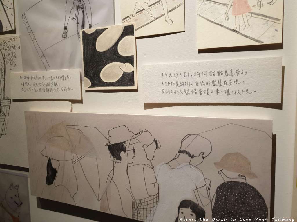 我仔細看著手繪圖稿及文字,這些作品充滿溫度,我個人非常喜歡鉛筆畫出的感覺。