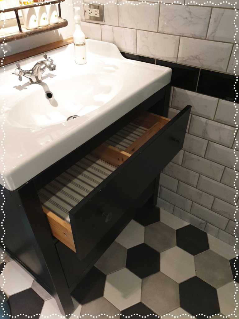手洗台下方的櫃子拉開都是可放私人物品,太方便了,這樣就不用東西都放在洗手檯上。