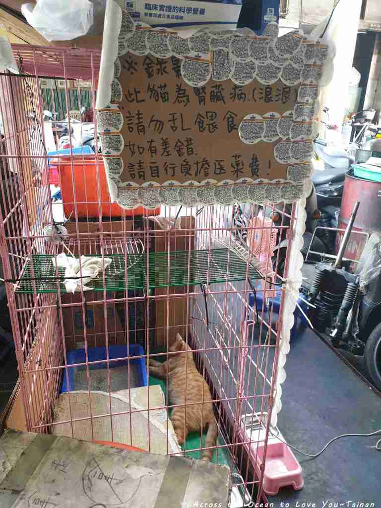 離開前在機車行旁看到這大籠子橘貓,上面寫的文字讓我很心疼,天氣這麼熱它躺在那舒服嗎? 很擔心也不敢多看,希望有人照顧它對它好。
