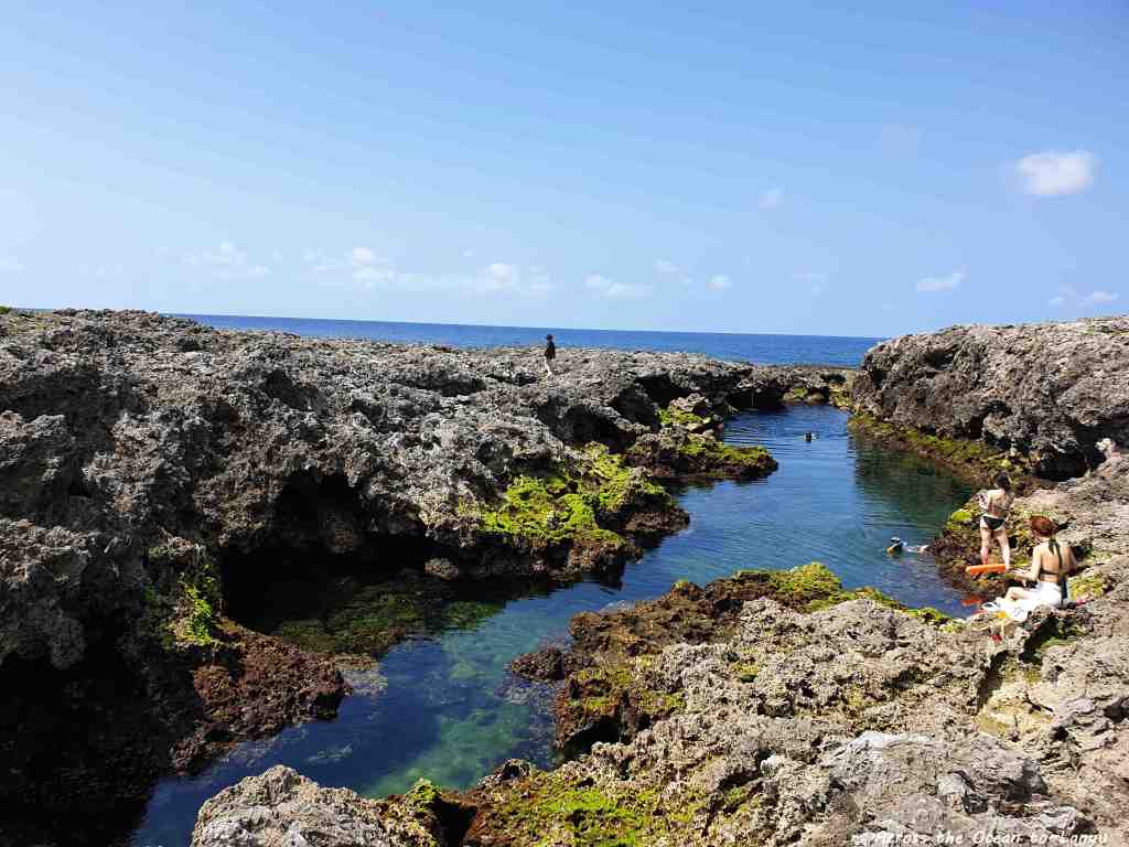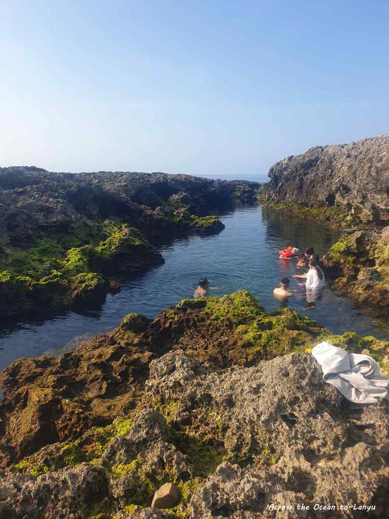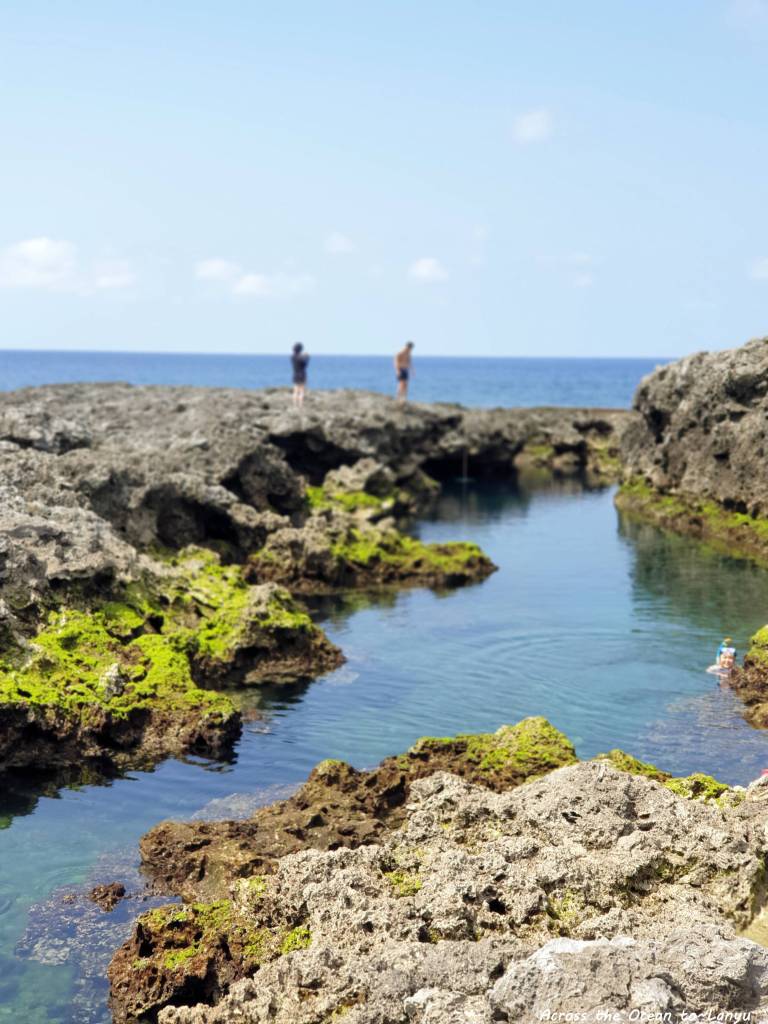 小心地踩在礁岩上,連我都忍不住要下水去探險了。一早的野銀冷泉幾乎沒有人,坐在這看著腳下綠色青苔,聽著海浪聲,真希望這一刻可以靜止。