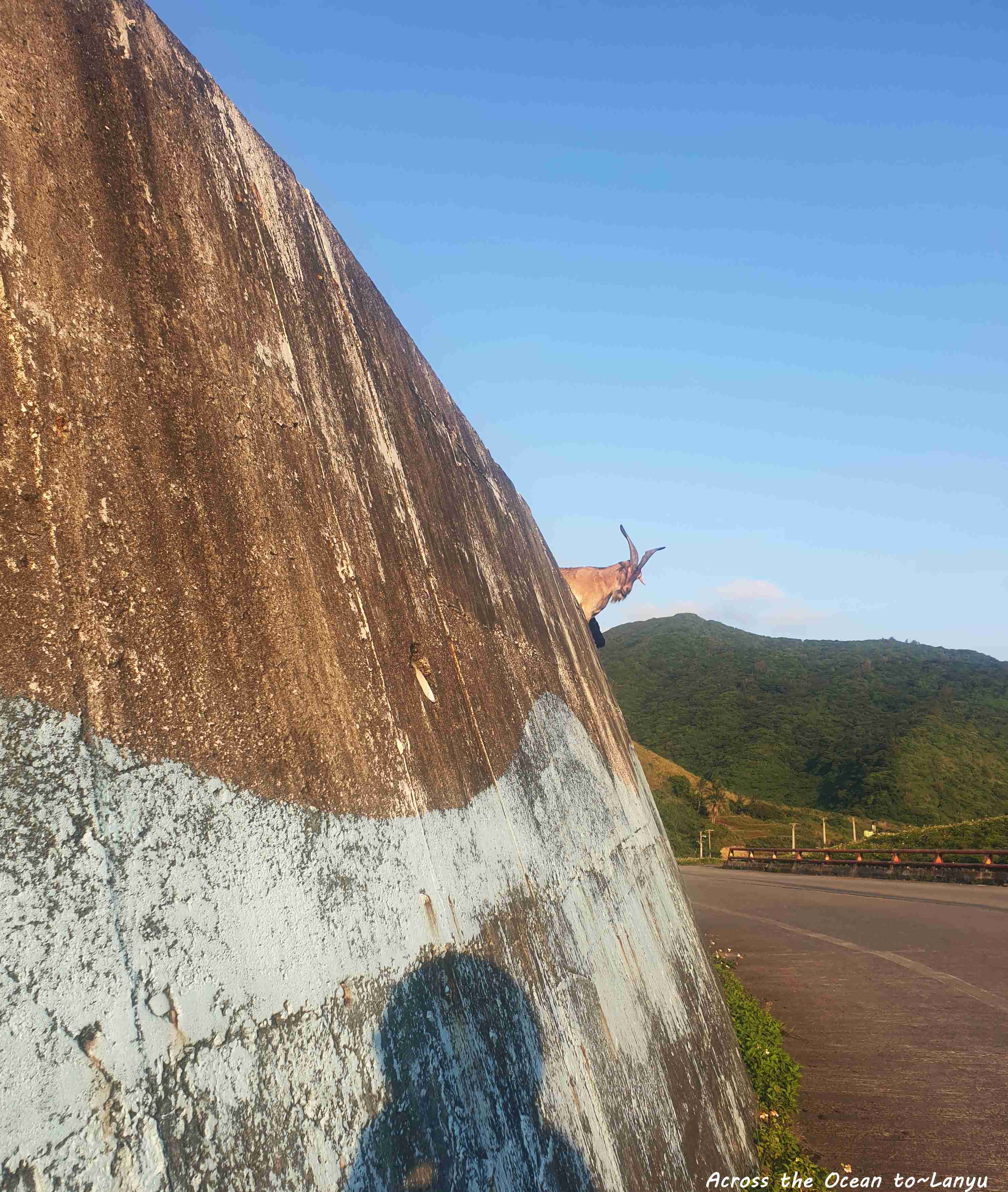 突然停下機車,觀看這海邊陡峭岩石上站的幾隻山羊,蘭嶼的羊真是很厲害,看起來危險的地方都有它們的足跡,到底是怎模上去的啊😯