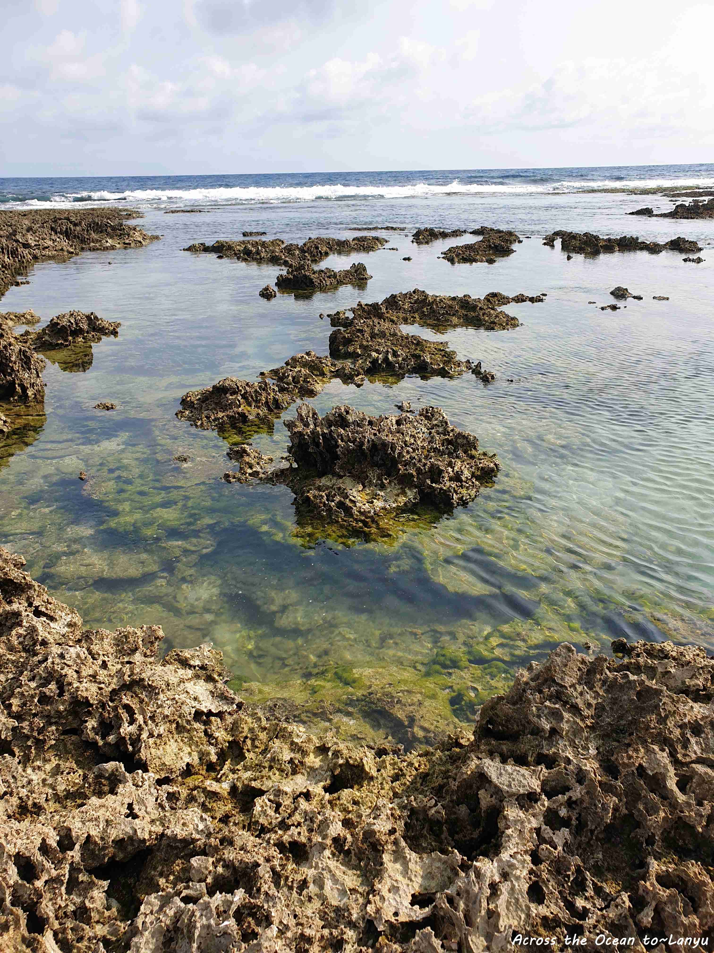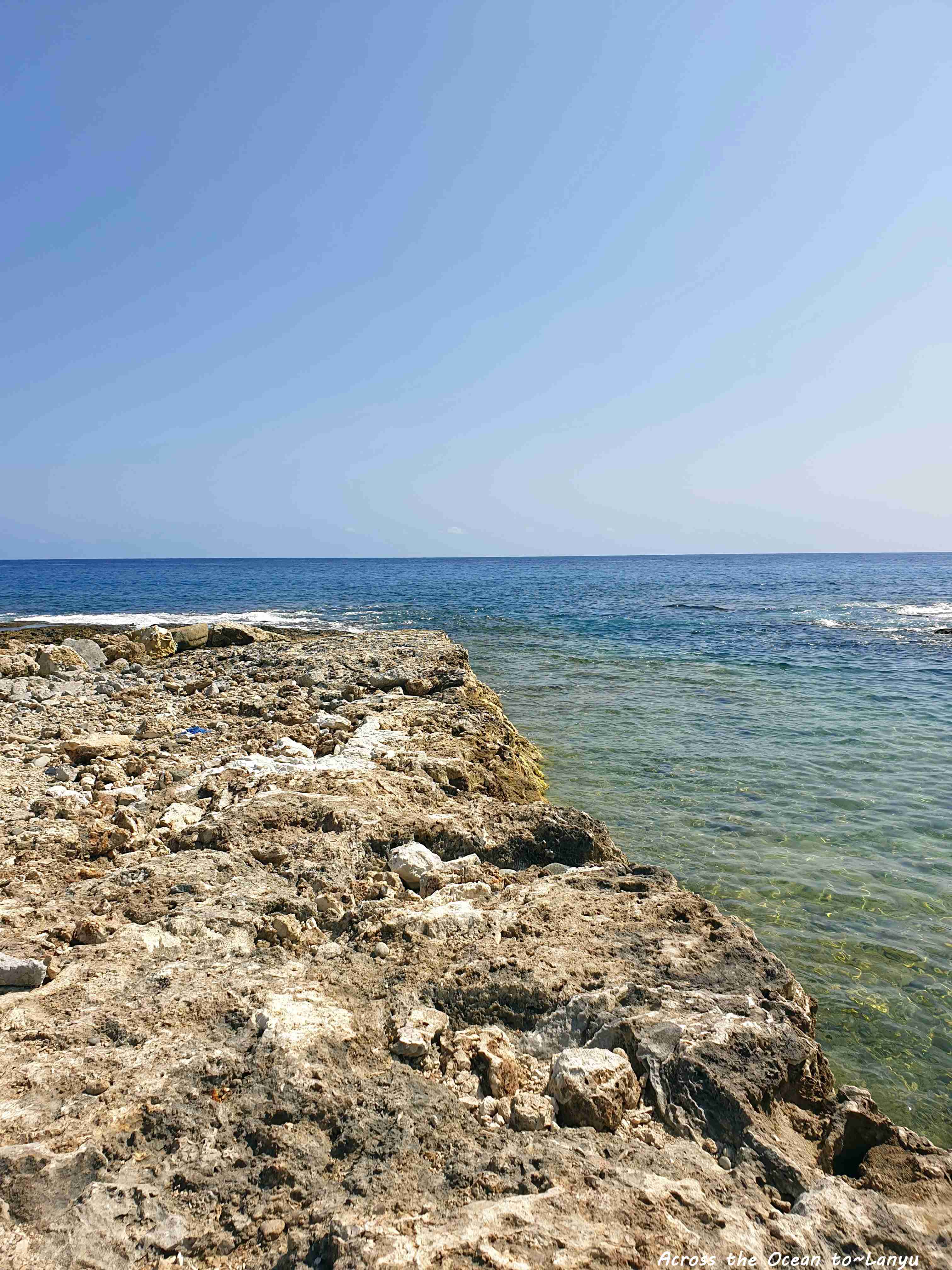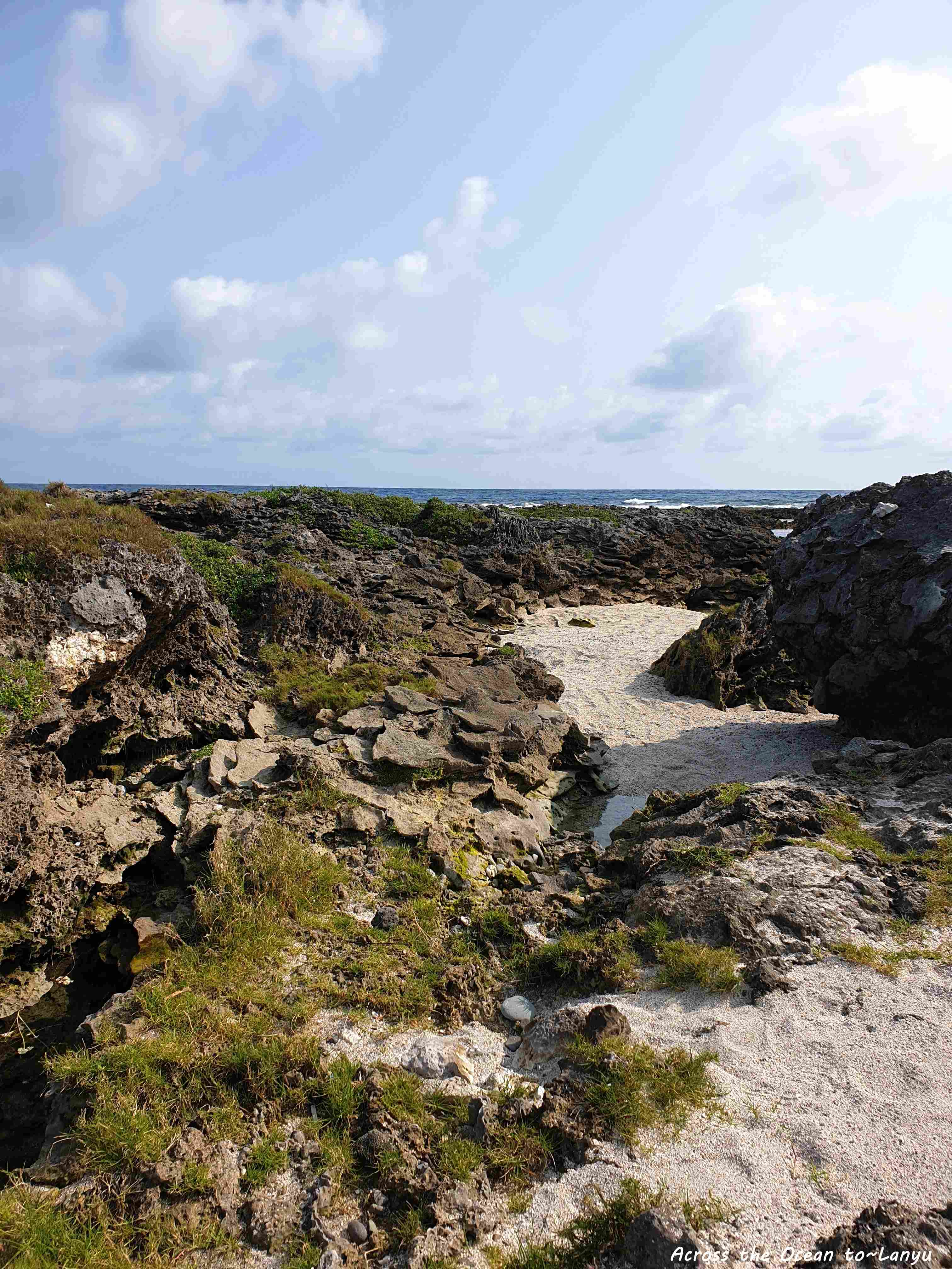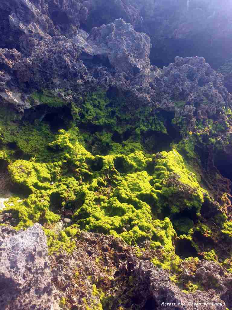 辛苦的爬過礁岩,這裡的礁岩真超銳利,要是一不小心踩空,我想後果會很慘,我超級小心又害怕著走過這些沿岸,但一心想看看所謂的 朗島秘境 是怎樣的景色。